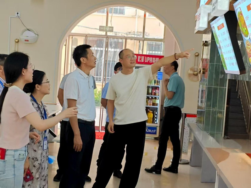 为全面贯彻落实习近平总书记关于食品安全“四个最严”的要求,防范化解校园食品风险隐患,筑牢校园食品安全防线,2025年8月31日,学院党委委员、纪委书记谢建山和学院党委委员,副院长陈艳红带领纪委办公室、安全保卫处、后勤管理处等职能部门负责人,深入学院各食堂开展秋季开学校园食品安全专项检查,全面排查风险隐患,全力守护师生“舌尖上的安全”。