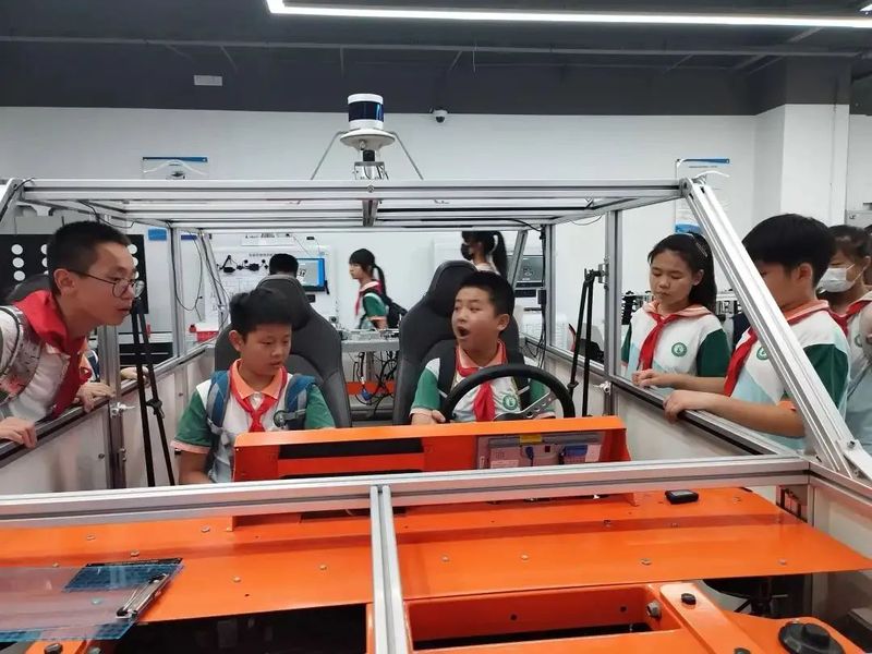 活动中,来自学院“夕阳红志愿者服务队”的10名“资深”老师们大手牵小手,引领孩子们排好队走进安全实训基地、航海基地、汽车基地、航空基地和轨道交通实训基地一项项体验,亲身融入现代化职业情景中,感受现代职业教育课程的魅力与风采。