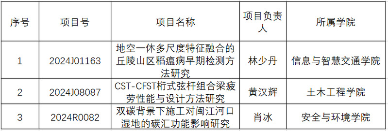 近日,从福建省科技厅获悉,我院林少丹、黄汉辉、肖冰等3位老师主持申报的项目获2024年度福建省科技计划项目立项,分别获批项目涵盖省自然科学基金面上项目、创青项目及省创新战略研究科技计划项目。