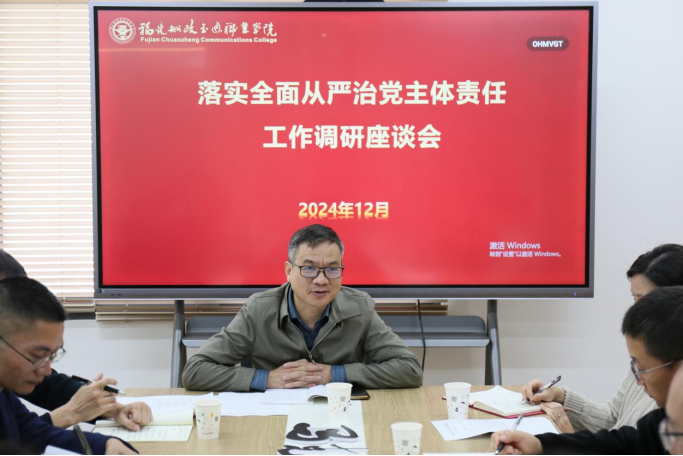 为推进全面从严治党向纵深发展,12月11日,学院党委书记陈宜大下基层开展全面从严治党工作调研,并在鉴知楼11层党员活动中心与部分二级学院及机关部门党政负责同志进行了座谈。