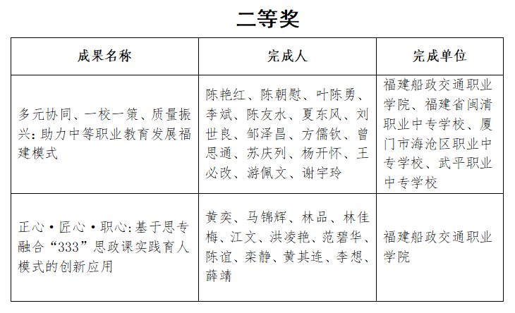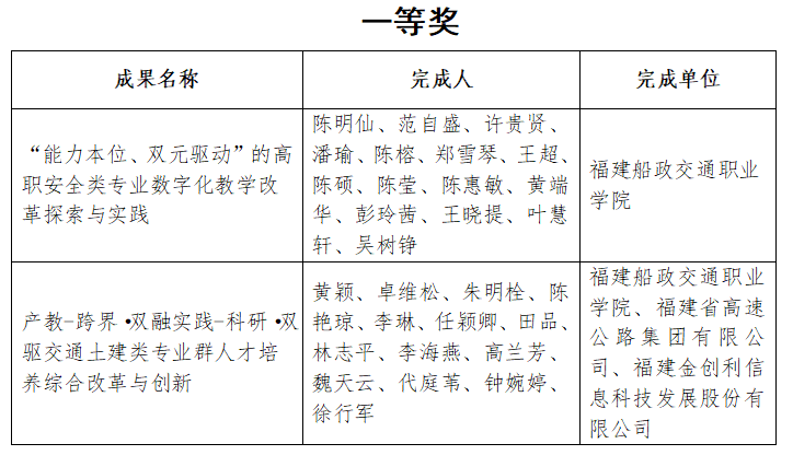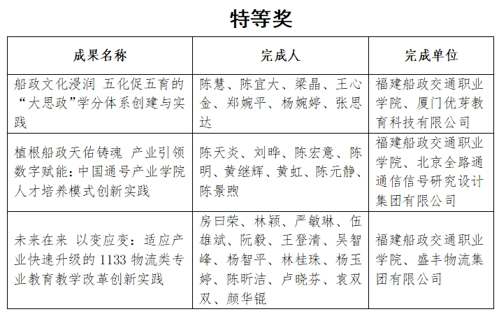 日前,省教育厅公布2024年省级教学成果奖获奖成果名单。由我院主持的7项成果荣获职业教育省级教学成果奖,其中:特等奖3项,一等奖2项,二等奖2项。