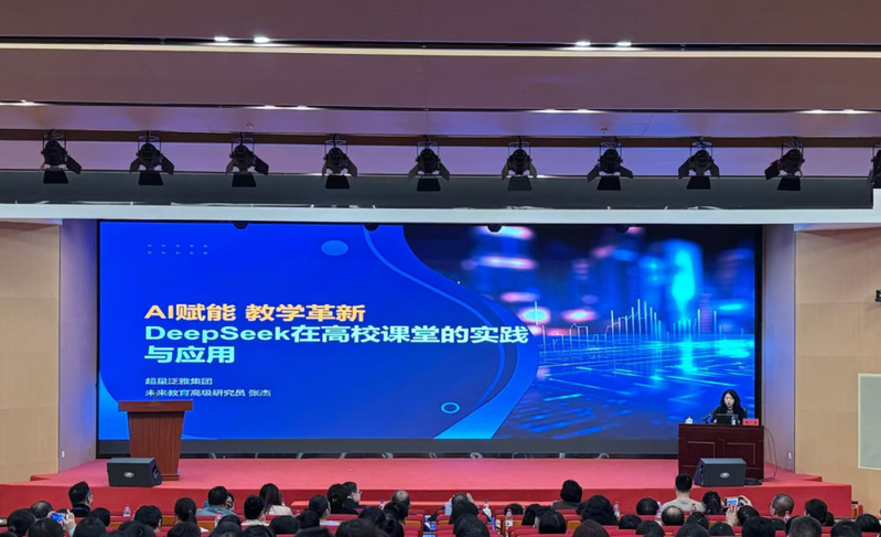 张杰在讲座中科普了DeepSeek的基本概念和正确使用方法,深入浅出地介绍了DeepSeek人工智能大模型在教育行业的典型案例,系统阐释AI工具进行教学实践的具体运用,包括教案编写、课堂互动、学情分析、教学评价等,积极推动以智助学、以智助教、以智助管、以智助研。