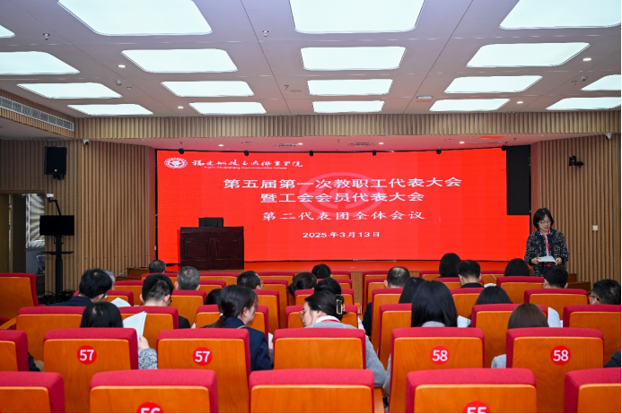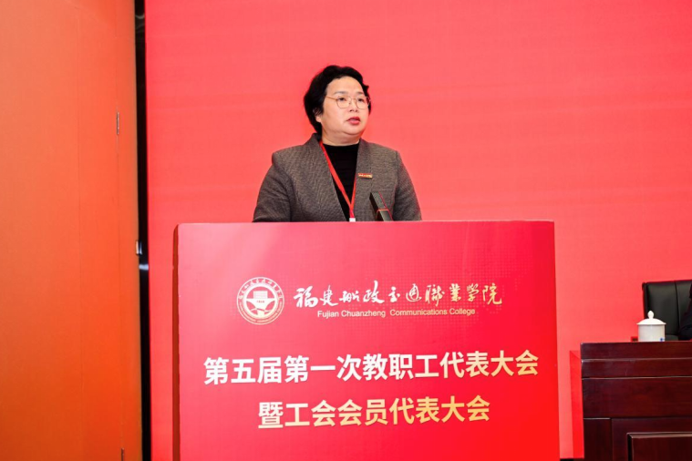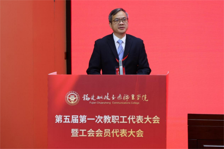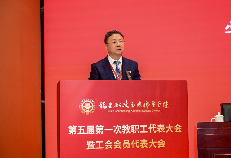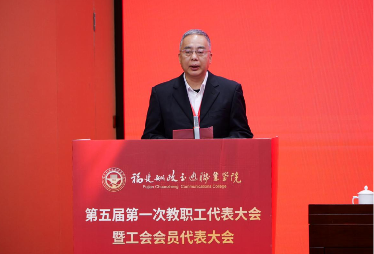福建省教科文卫体工会工委主任郭立新充分肯定学院工会六年来的工作成效,并代表上级工会组织提出四点要求:一要聚焦思想引领、夯实奋进根基;二要聚焦服务大局、锚定担当作为;三要聚焦服务职工、激发动力活力。勉励学院工会继续保持良好工作势头,充分调动和激发广大教职工干事创业热情,为学院高质量发展贡献工会力量。