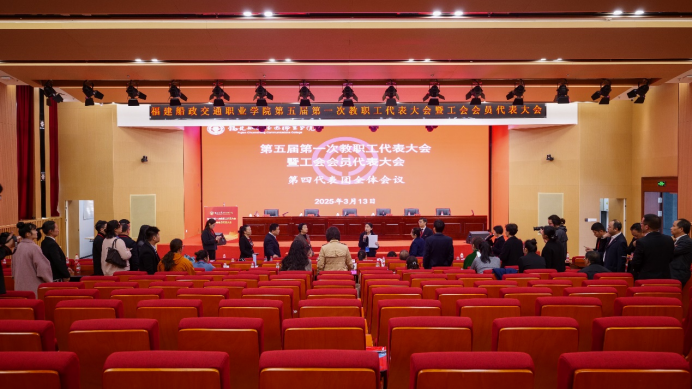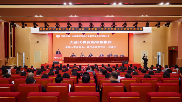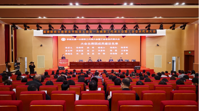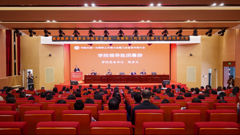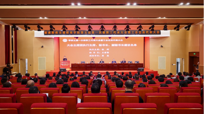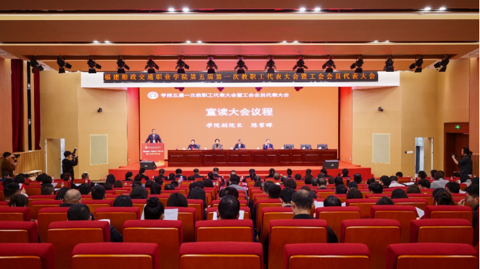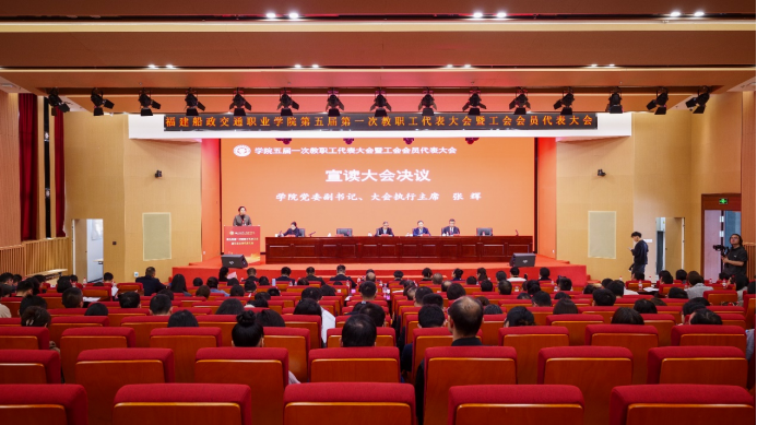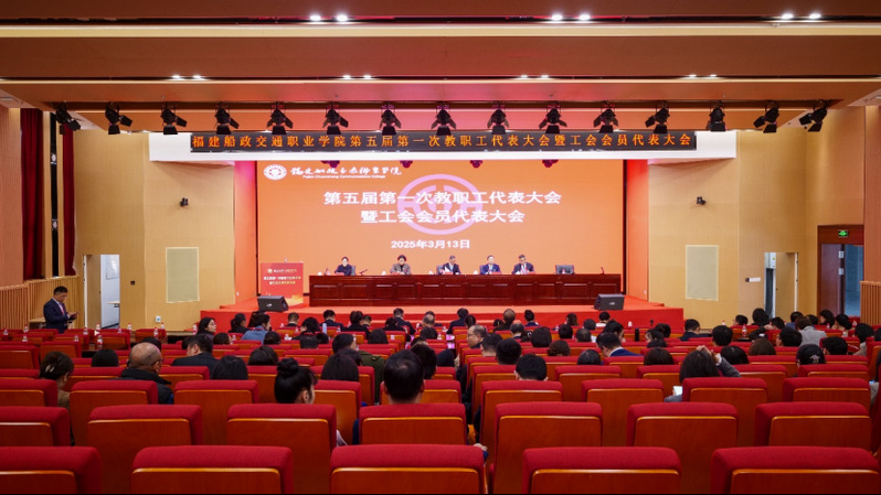 3月13日上午,福建船政交通职业学院第五届第一次教职工代表大会暨工会会员代表大会在福船园艺新楼331报告厅顺利举行。本次会议是在学院深入学习宣传贯彻全国两会精神和全国、全省教育大会精神,“十四五”规划全面收官、“十五五”规划谋篇布局,学院申创第二期“双高计划”建设和深化综合改革的关键时期召开的一次重要会议。福建省教科文卫体工会工委主任郭立新、副主任阳先辉,学院党委书记陈宜大,党委副书记、院长陈锦辉,党委副书记张辉,党委委员、副院长陈艳红,副院长陈常晖出席会议,正式代表、列席代表共200多人参加会议。会议由学院党委委员、副院长陈艳红主持。