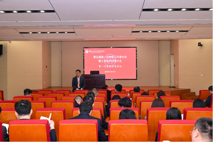 学院党委书记陈宜大致闭幕辞。他指出“双代会”作为教职工依法参加学院民主管理和监督的基本形式和现代大学治理体系的重要组成部分,要充分发挥“双代会”在学院综合改革中的制度优势和治理效能,推动学院事业发展在守正创新中行稳致远。他充分肯定了五届一次“双代会”取得的成果,并强调了三点工作要求:一是强化政治引领,筑牢民主治校新根基。二是落实立德树人,锻造强国战略新引擎。三是聚焦党建赋能,绘就改革发展新蓝图。希望全体教职工以此次“双代会”为契机,高质量完成学院“十四五”发展规划和年度工作任务,重点围绕2025—2029年中国特色高水平高职学校和专业建设,对标职业本科建设目标,以更加奋发昂扬的姿态和优异的成绩迎接学院办学160周年和新中国成立80周年,用实际行动谱写中国式职业教育现代化的船政新篇章!