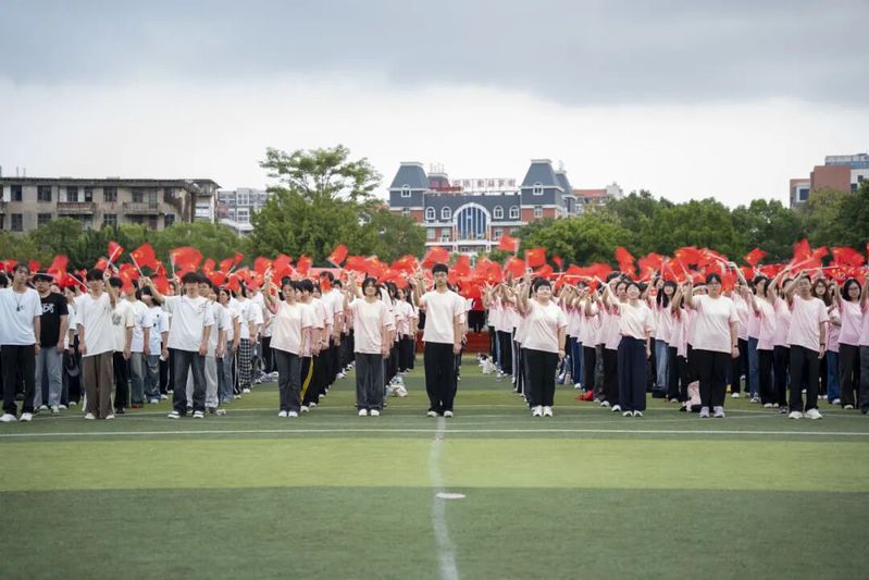 国歌余韵尚在校园回荡,师生们已高举国旗,将满腔热忱化作铿锵呐喊:“青春为中国式现代化挺膺担当,强国复兴有我!强国复兴有我!强国复兴有我!” 嘹亮的口号,既是对祖国的深情告白,更将复兴征程上的青春誓言,牢牢镌刻在晨光里、心底间。