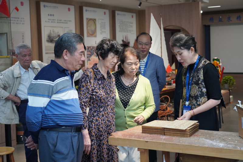 交流结束后,船政后裔一行参观了学院校史馆,在一幅幅珍贵的历史图片、一件件实物展品前,驻足聆听讲解,重温先辈们投身船政事业的峥嵘岁月,感受学院百年办学的深厚底蕴,并现场提供了自己撰写的船政先贤事迹手稿。他们纷纷表示愿意通过捐赠、复制等方式,向我院校史馆提供更多先人前辈的物件等纪念品。