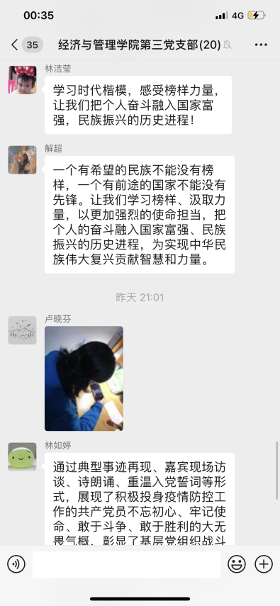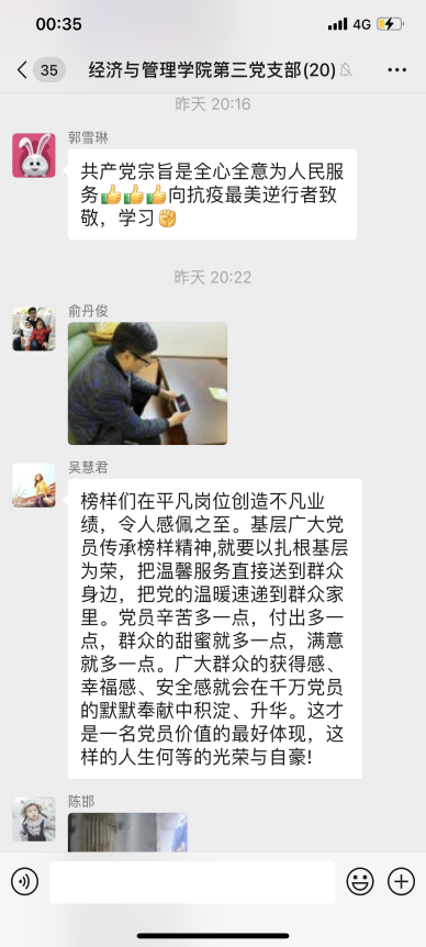 观看过程中,党员同志们在党员微信群内积极发言,交流观看心得。