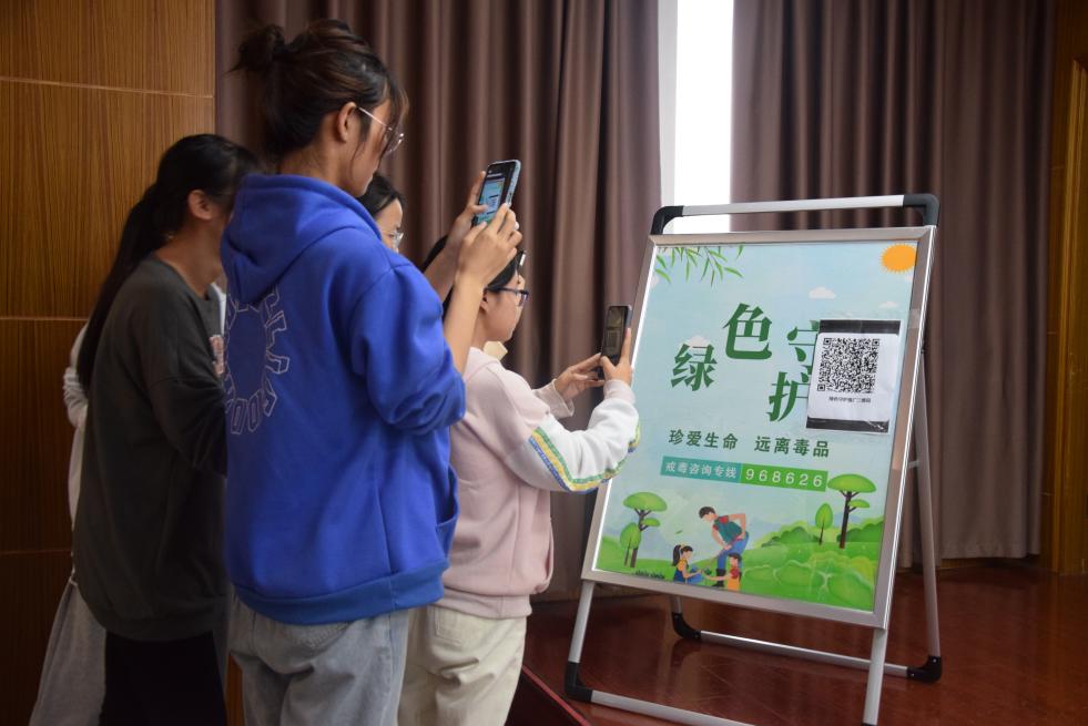 黄警官还向同学们介绍了“绿色守护”APP,通过此APP可以学习禁毒知识,知晓毒品危害、了解禁毒工作。