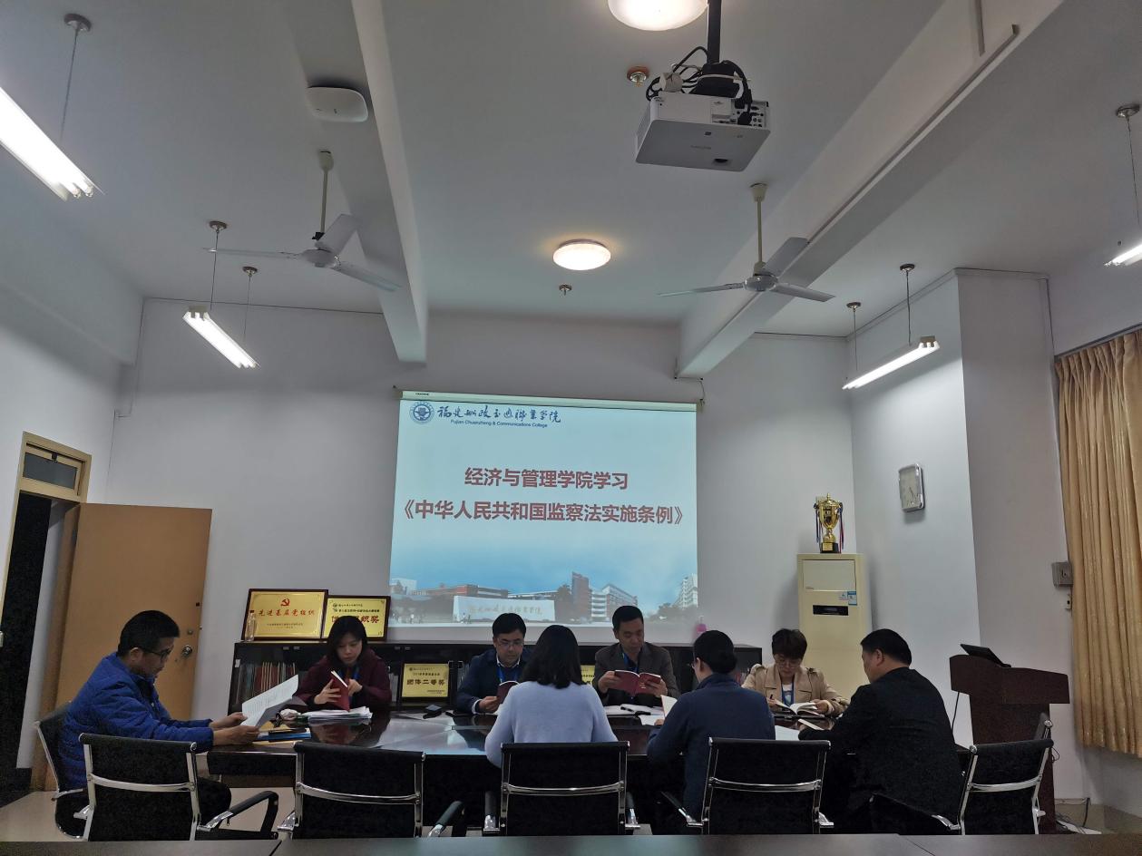 2021年11月24日,经济与管理学院组织学院副科及以上干部专题学习了《中华人民共和国监察法实施条例》。