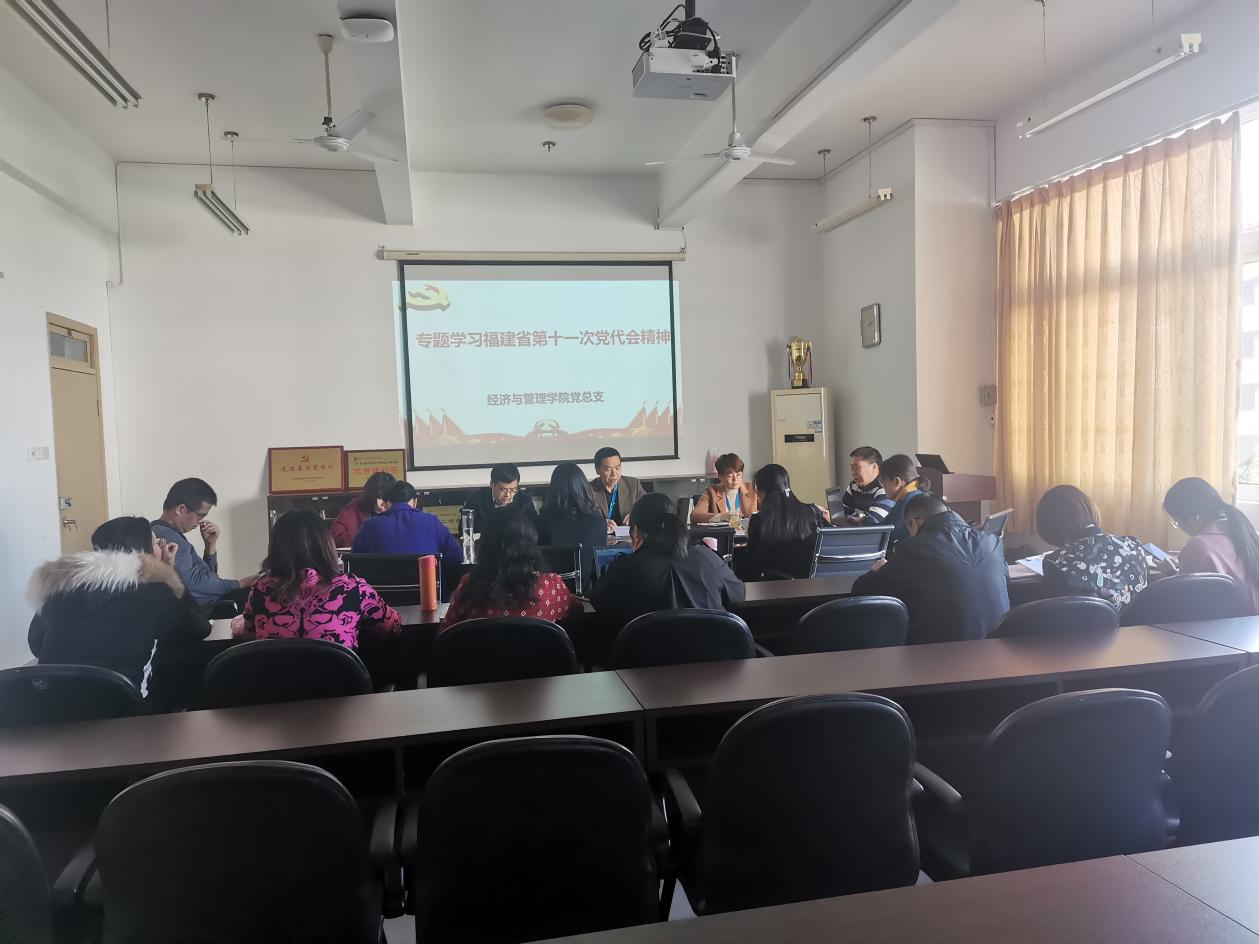 12月1日下午,经济与管理学院党总支书记俞素平主持召开党总支理论学习中心组(扩大)议,传达学习福建省第十一次党代会精神。