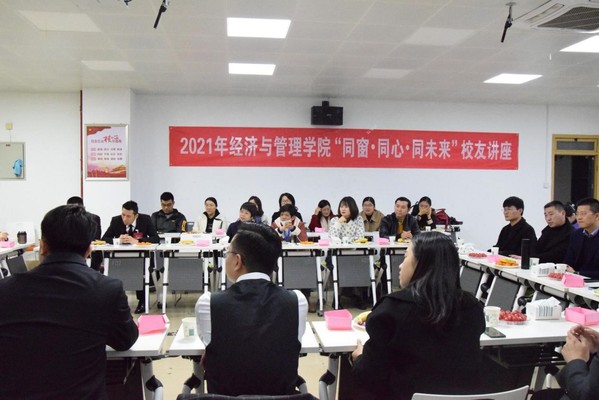随后,返校校友相聚一堂,畅所欲言。分别以在母校读书学习生活为起点,述说了他们的人生历程以及取得的成绩,并各自表达了对母校的感恩之情:“今天找到组织了”、“学校给予我的不只是学业更多的是情感”。给在读的同学们分享他们与经管的故事以及他们毕业后的工作经验,并表达了他们对师弟师妹的殷切期待。大家一致认为:通过校友会搭建的交流互动平台,给大家构建起了一个温馨的“家”,团结友爱、互帮互助。