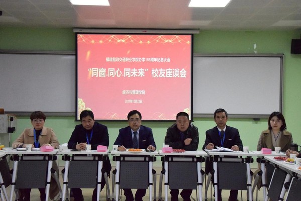 光阴荏苒,年华变换。转眼间,福建船政交通职业学院已经走过了155个春秋。2021年12月23日下午,值此办学155周年校庆之际,我院举行“同窗•同心•同未来”校友座谈会,邀请优秀校友分享成长、成才、成人的心得体会。学院党政领导,各教研室主任,部分教师、学生代表出席座谈会。会议由林丽萍主持。