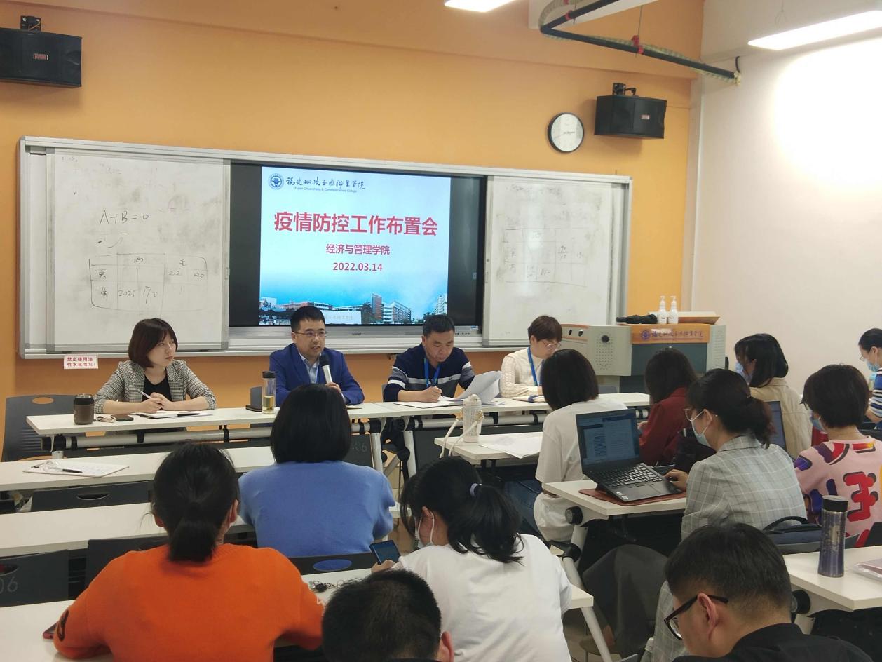 贯彻落实省委省政府、省教育厅、学校疫情防控会议精神,3月14日下午14:30分,经济与管理学院召开疫情防控工作布置会议,对近期疫情防控工作进行再部署、再动员、再落实。学院领导、全体辅导员、全体班主任、各教研室主任、实训中心主任、办公室参加会议。房曰荣院长主持会议。