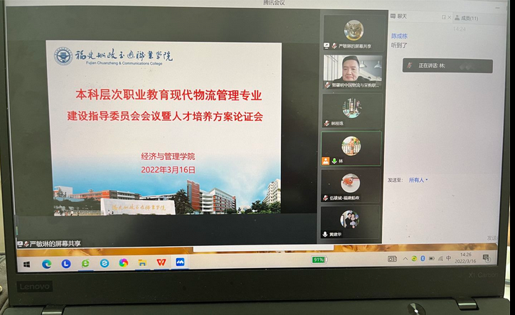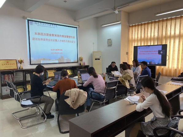 3月16日下午,本科层次职业教育现代物流管理专业建设指导委员会会议暨人才培养方案论证会在南区经管楼412会议室召开。受疫情影响,本次会议采用线上腾讯会议与线下现场会议相结合方式进行。会议邀请中国物流与采购联合会、中国物流学会副秘书长、教育部高等学校物流管理与工程专业类教学指导委员会秘书长、全国物流行业职业教育教学指导委员会秘书长郭肇明先生;交通运输部公路科学研究院物流中心主任,正高级工程师蔡翠女士;福州大学经济与管理学院院长助理,物流研究院副院长,高层管理培训中心主任黄建华教授;闽江学院经济与管理学院管理科学与工程系主任、福州市物流协会副会长陈成栋教授;中共福建省委宣传部首批理论研究及宣传专家库成员,福建商学院工商管理学院黄珏群教授;福建省物流协会副会长,宁德市交通投资集团高级经济师、宁德市物流行业协会会长郭宇博士与我校一线教师伍雄斌博士共计七人组成专家团队,参与专业人才培养方案评审。经济与管理学院院长房曰荣、副院长林颖及现代物流管理专业全体教师参加线下会议。