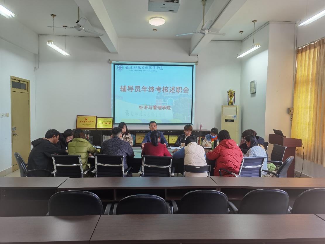 为进一步提高学院辅导员的思想政治素养和教育管理能力,经济与管理学院于2021年12月29日举办了2021年辅导员年终考核述职大会,并作年度工作总结。经济与管理学院党总支书记俞素平、副书记林丽萍及经济与管理学院全体辅导员参加会议。