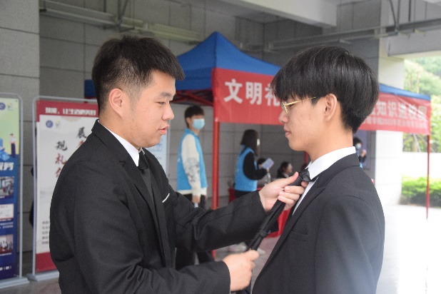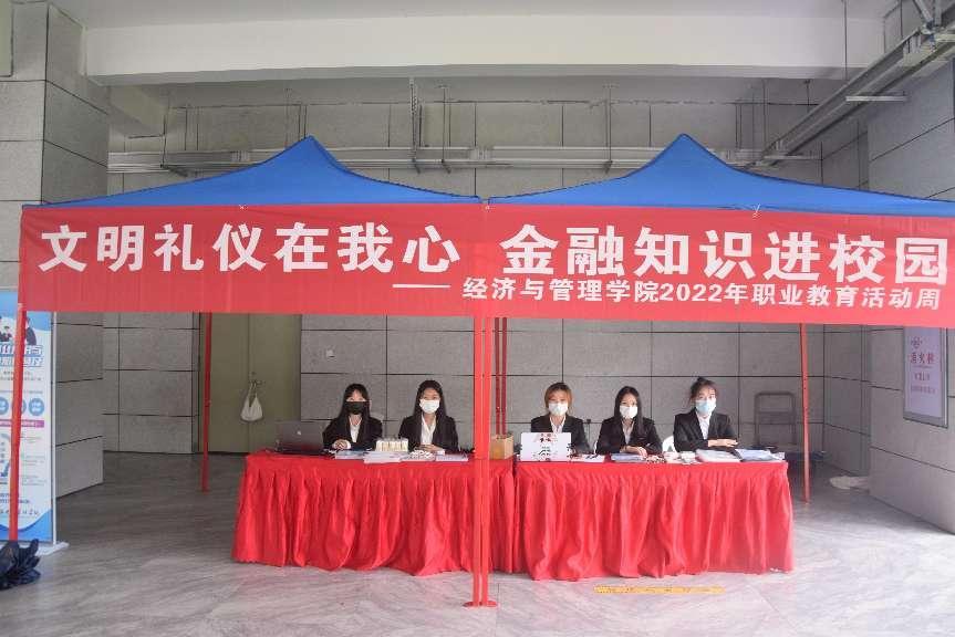 2022年5月12日,利用职教周活动,经济与管理学院在南区新实训大楼开展“文明礼仪在我心”之展青春风采,现礼仪之美活动,活动旨在提高学生们的文明礼仪意识。