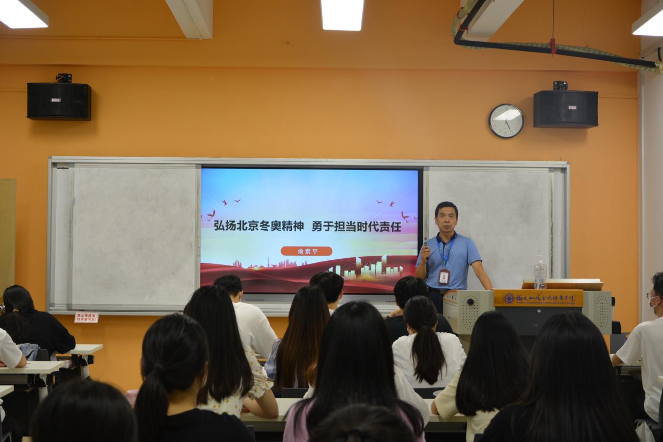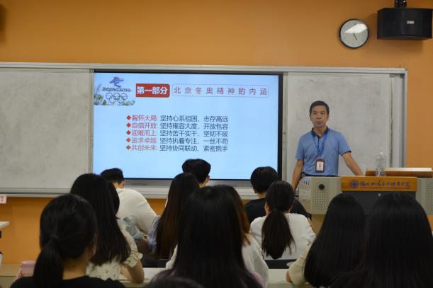 为深入学习贯彻习近平总书记在北京冬奥表彰大会上的重要讲话精神,弘扬“胸怀大局、自信开放、迎难而上、追求卓越、共创未来”的冬奥精神。2022年6月21日晚,经济与管理学院党总支书记俞素平为学院2020级会计专业部分学生开展“弘扬北京冬奥精神,勇于担当时代责任”形势与政策课。
