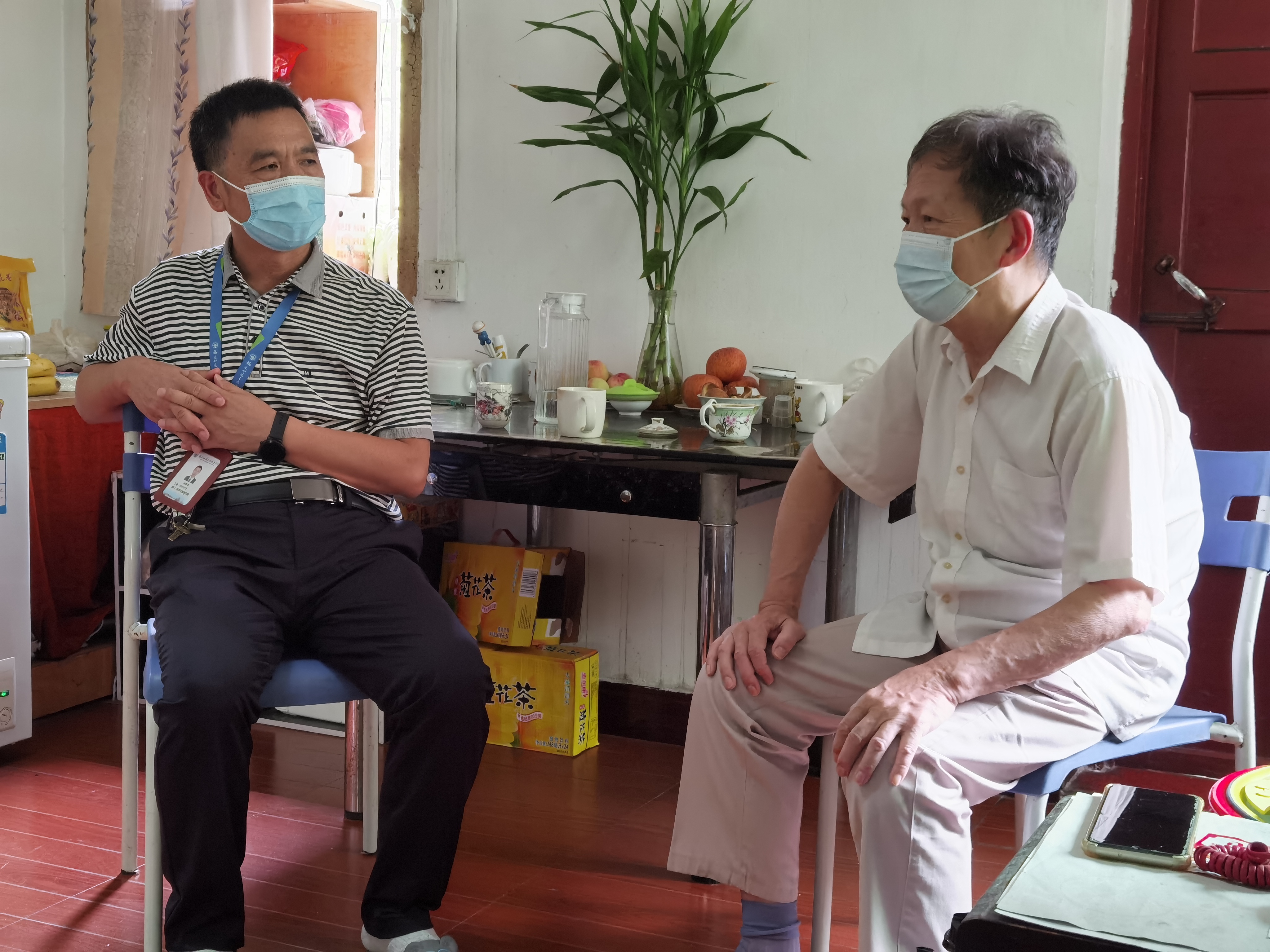 在王迎平老同志的家中,俞素平书记、林丽萍副书记详细询问了老同志的身体健康状况和家庭生活情况,介绍了学院目前的发展和建设情况,耐心倾听老党员对学院工作的意见和建议,希望老同志退休不褪色,离岗不离职,继续关注学院的发展,对学院未来发展多提宝贵意见和建议。