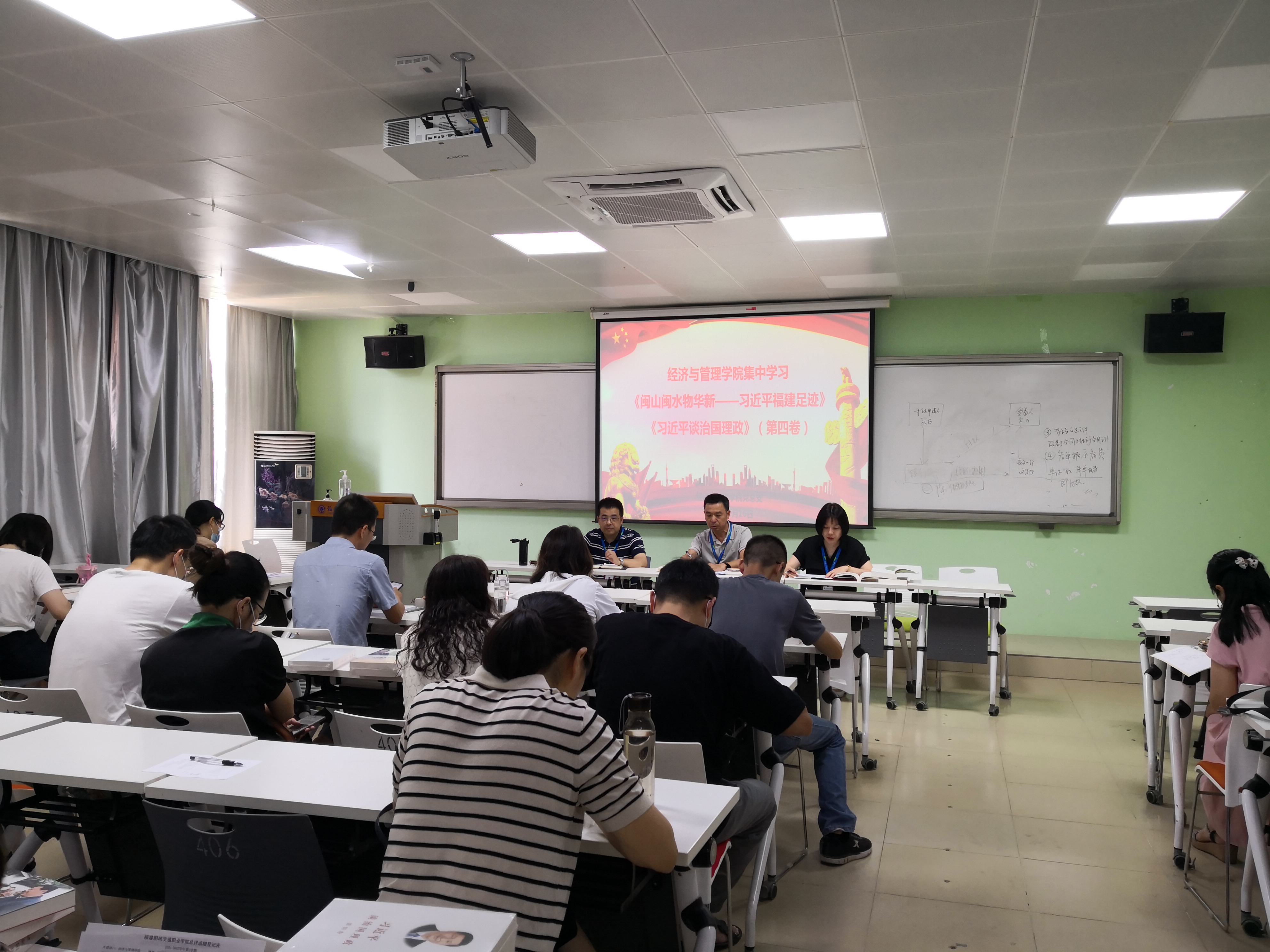 8月16日上午,经济与管理学院召开全体教职工大会,集中学习研讨《闽山闽水物华新——习近平福建足迹》《习近平谈治国理政》(第四卷)。会议由党总支书记俞素平主持。