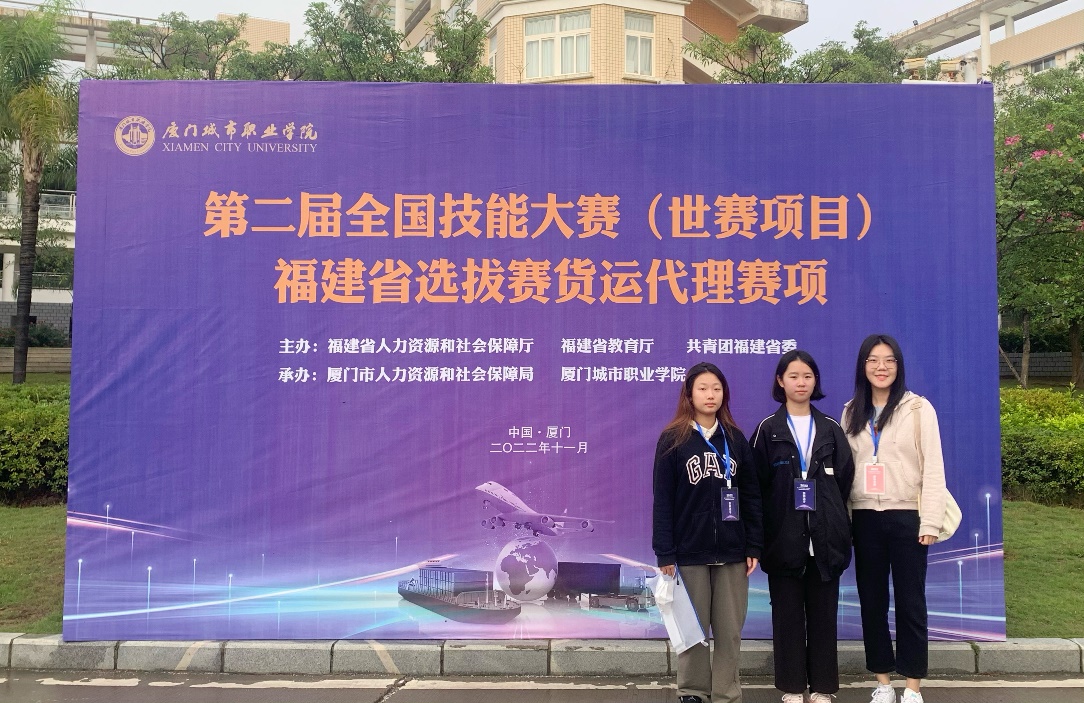 第二届全国技能大赛(世赛项目)福建省选拔赛货运代理赛项于2022年11月25-26日在厦门城市职业学院举行,在指导老师江潇的带领下,我院关务与外贸服务专业的学生曾婧虹和冯柯分别获得第二名和第四名的好成绩。