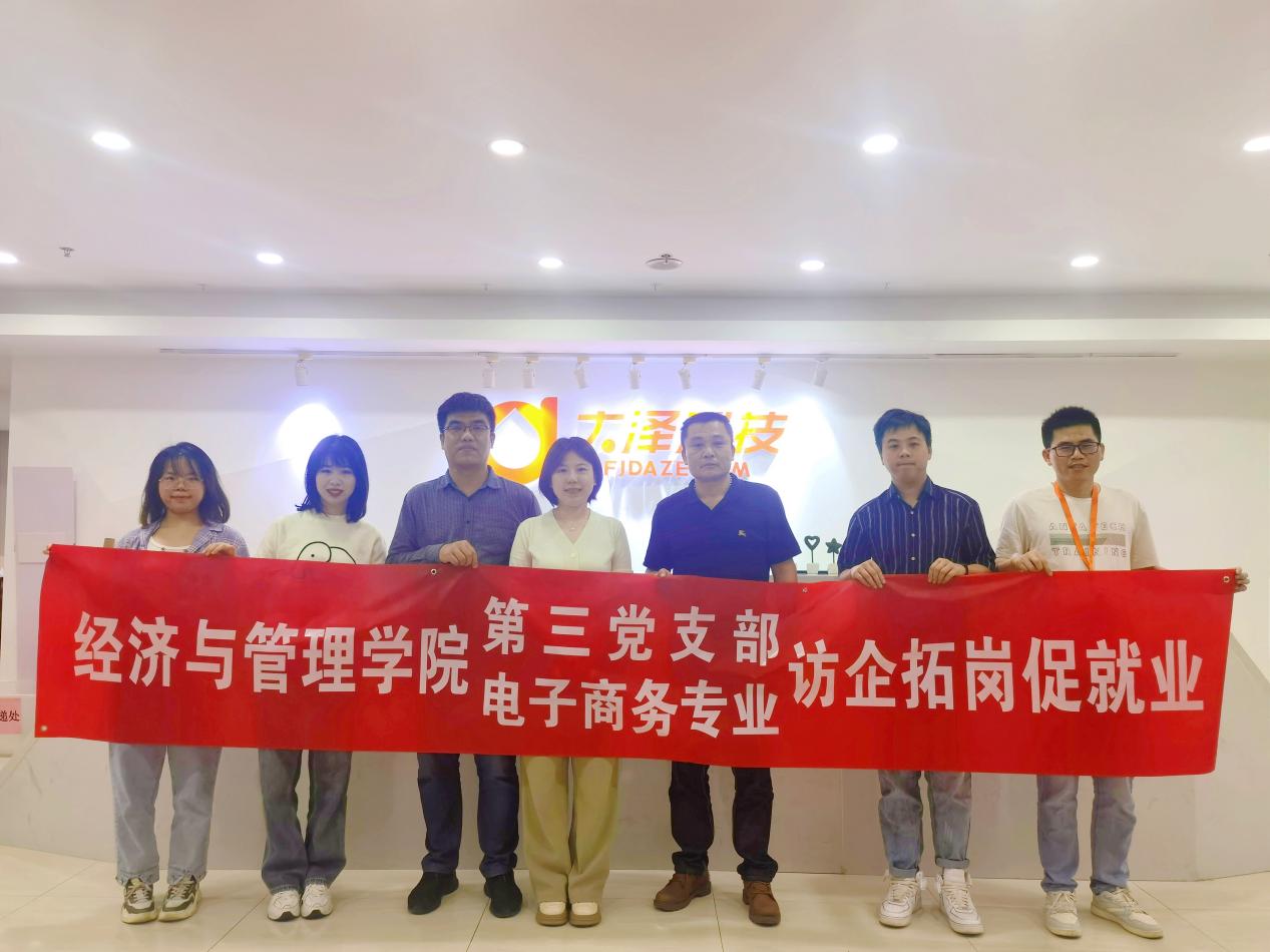 为深入贯彻党中央、国务院关于高校毕业生就业工作的决策部署,落实访企拓岗促就业专项行动,深化校企交流合作,进一步拓宽毕业生就业渠道,促进毕业生更加充分和更高质量就业,实现校企资源的有机结合和优化配置,2023年4月20日下午,经管学院副院长林颖、电商教研室主任陈乐天一行,前往福建大泽科技网络有限公司进行考察并参加座谈会。