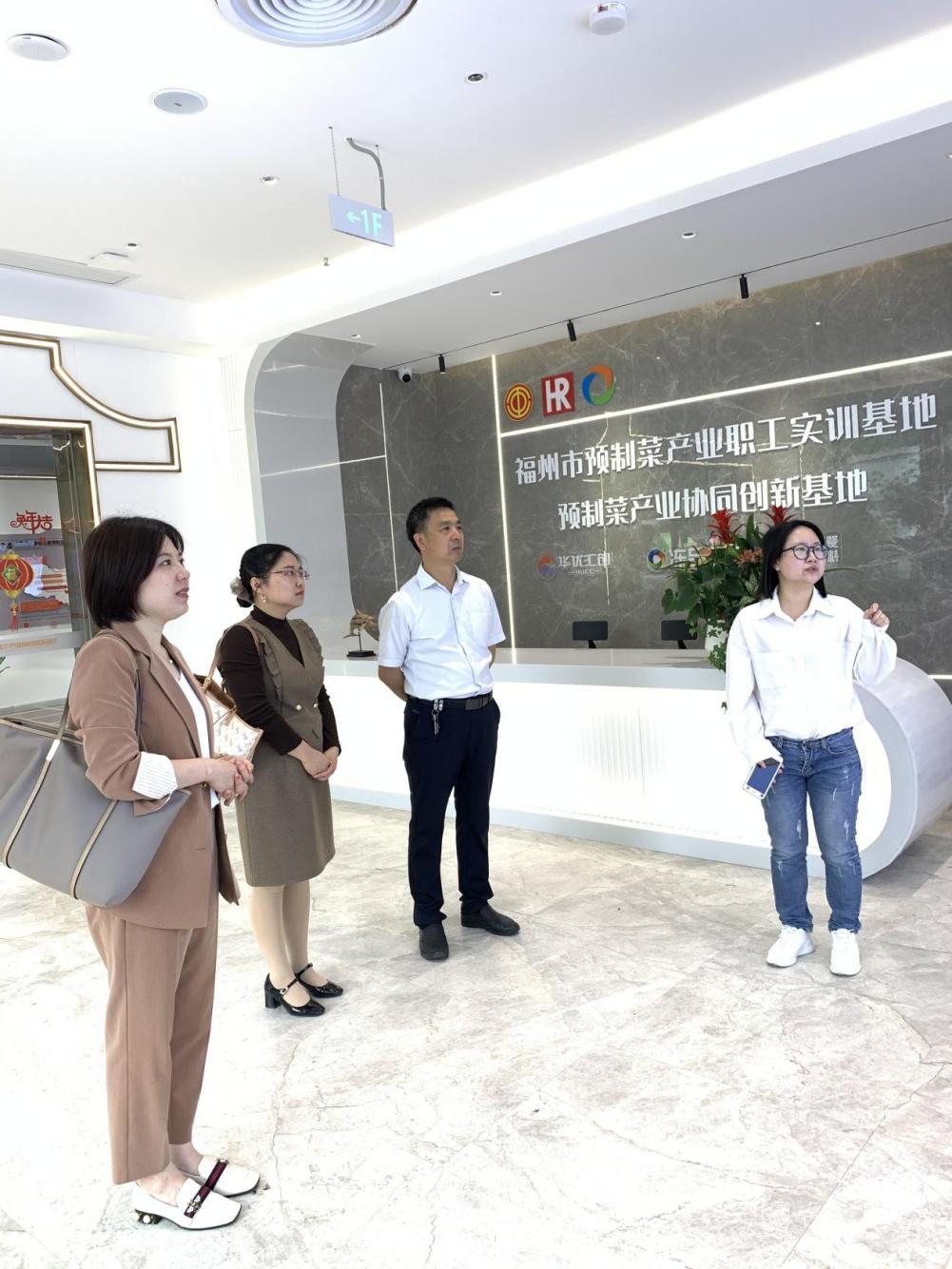 俞素平书记一行首先参观了预制菜产业协同创新基地,冻品在线人事经理李园清介绍了基地作为福州首个中心城区预制菜基地,由福州市推进产业工人队伍建设改革领导小组办公室、福州市总工会、台江区人民政府、本土培育的预制菜产业链龙头企业冻品在线及国企华榕集团联合打造,基地致力于搭建预制菜领域“人才+产业+市场”的运营模式。