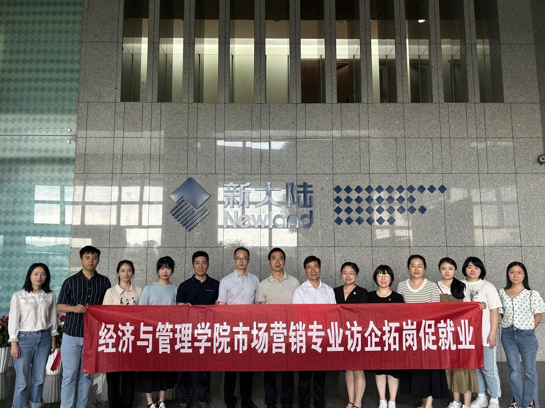为扎实开展学习贯彻习近平新时代中国特色社会主义思想主题教育,牢牢把握“学思想、强党性、重实践、建新功”的总要求,贯彻落实党中央、国务院关于高校毕业生就业工作的决策部署,扎实推进学校就业工作,5月5日,经济与管理学院党总支书记俞素平带领市场营销教研室和电子商务教研室部分老师前往新大陆科技集团开展访企拓岗促就业专项行动。