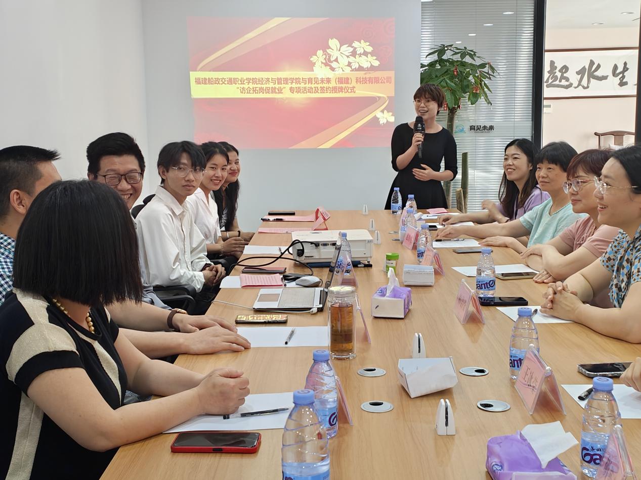 为深入贯彻落实党中央、国务院关于高校毕业生就业工作的决策部署,进一步落实访企拓岗促就业专项行动工作要求和学校相关文件精神。2023年5月18日,我院党总支副书记林丽萍、大数据与会计教研室主任林洁莹等教师前往浙江星嘉合信息管理有限公司和育见未来(福建)科技有限公司开展访企拓岗促就业专项行动。共同就行业发展、人才培养、人才需求等进行了深入交流,为应届毕业生、实习生提供精准就业实习指导,开拓就业市场,拓宽2023届毕业生就业渠道。