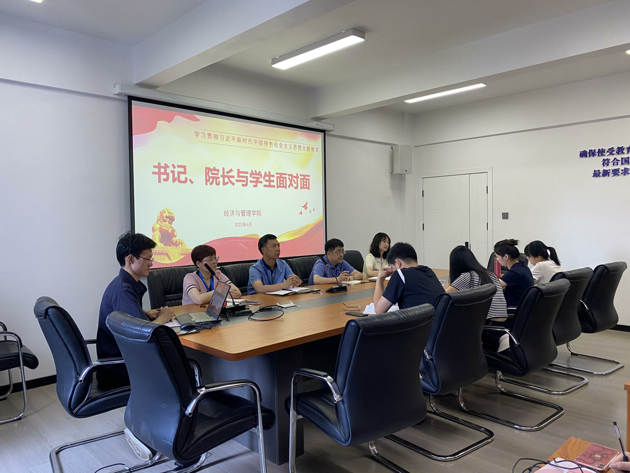 为推进学习贯彻习近平新时代中国特色社会主义思想主题教育走深走实,关心学生成长成才,听取毕业生对学校、学院发展的意见和建议,6月12日上午,经济与管理学院在航海楼三楼会议室召开书记、院长与学生面对面之2023届毕业生座谈会。党总支书记俞素平、院长房曰荣、党总支副书记林丽萍、分团委书记傅一丹、毕业班辅导员以及2023届各班毕业生代表参加了此次座谈会。