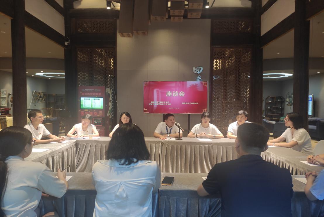 随后党员同志们前往福建省电子商务协会就加强校企合作展开讨论。在座谈会上,双方就电商人才培养模式、校企合作、人才就业等方面展开深入沟通和探讨。支部书记提出,希望通过校企深度合作,打造实习实训基地,为学生赋能,培养学生的实践操作能力,在实践中领会理论知识并获得持续发展,最终培养成为电商背景下的综合性应用型人才。