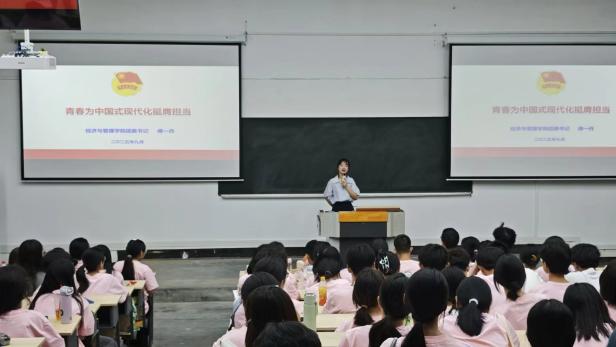 2.精心组织“开学第一课”,把准青春航向。面向全体新生举办“启迪思想,共筑未来”开学第一课教育活动。学院团委书记围绕“青春为中国式现代化挺膺担当”主题,从理想信念、责任担当、实践行动三个维度进行深入阐释,结合专业特色与人才培养要求,引导新生深刻认识时代责任,明确学习目标,增强集体归属感,以昂扬姿态开启大学新征程。