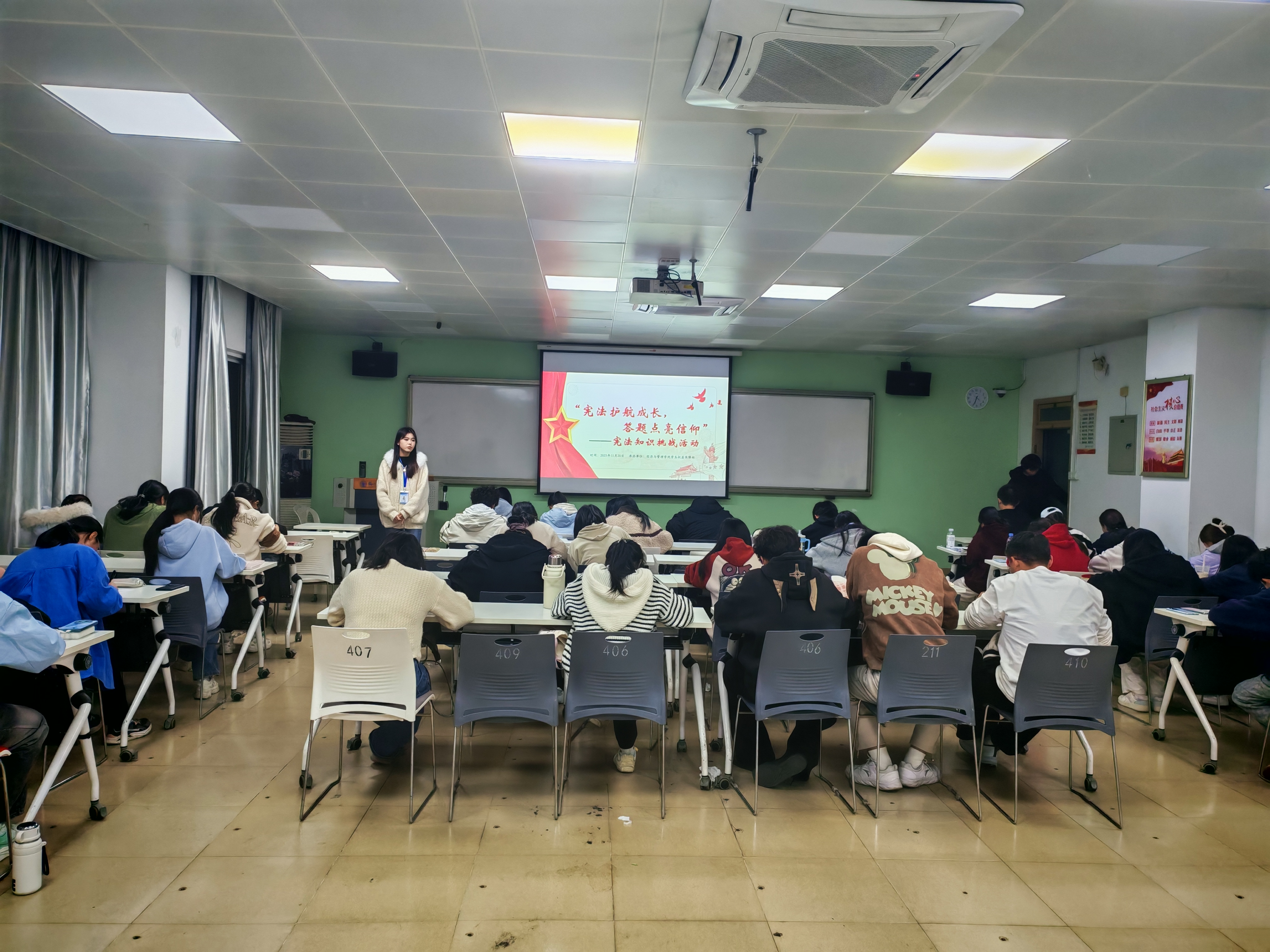 3.举办专题知识挑战,培育法治信仰。组织开展“宪法护航成长,答题点亮信仰”宪法知识挑战活动。活动紧扣宪法核心知识与青年生活实际,通过答题竞赛的形式,激发学生学习宪法、尊崇宪法的热情,夯实法治知识储备,引导青年自觉成为社会主义法治的忠实崇尚者、自觉遵守者、坚定捍卫者,营造了校园内尊法学法守法用法的良好氛围。