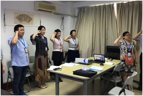 “我志愿加入中国共产党,拥护党的纲领,遵守党的章程,履行党员义务,执行党的决定,严守党的纪律,保守党的秘密,对党忠诚,积极工作,为共产主义奋斗终身,随时准备为党和人民牺牲一切,永不叛党。”主题党日活动在庄严的宣誓中开始。党支部副书记谢翠红同志带领全体党员重温入党誓词,全体党员通过重温誓词,对照誓言,对照入党初心,对心灵和精神进行了一次洗礼。