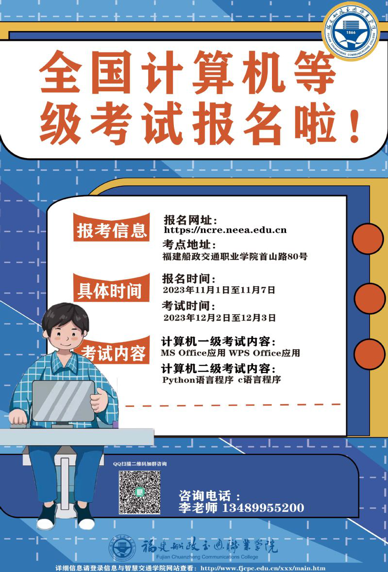 2023年12月全国计算机等级考试(第71考次)将于12月2日至3日举行,此次开考计算机一、二级。为确保考试安全有序平稳实施,现将报名事项提示如下: