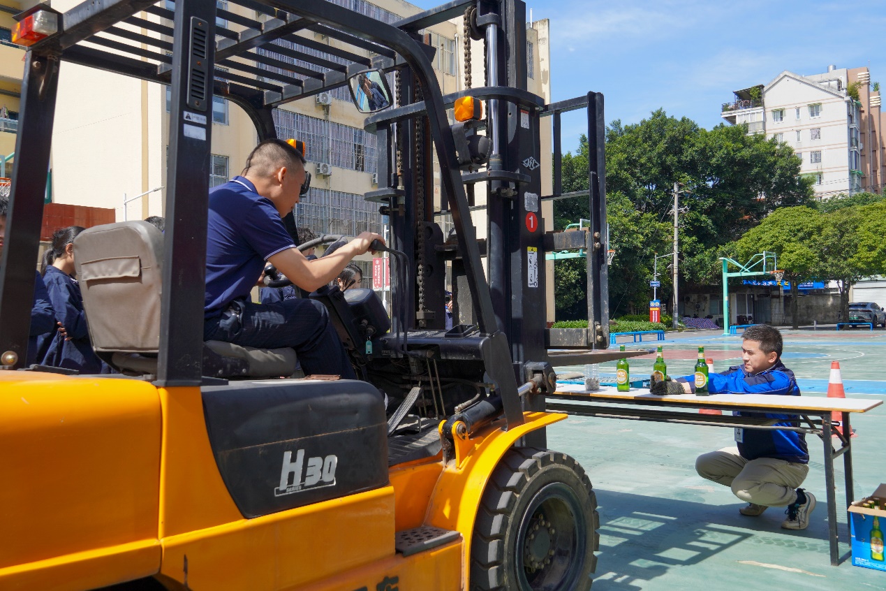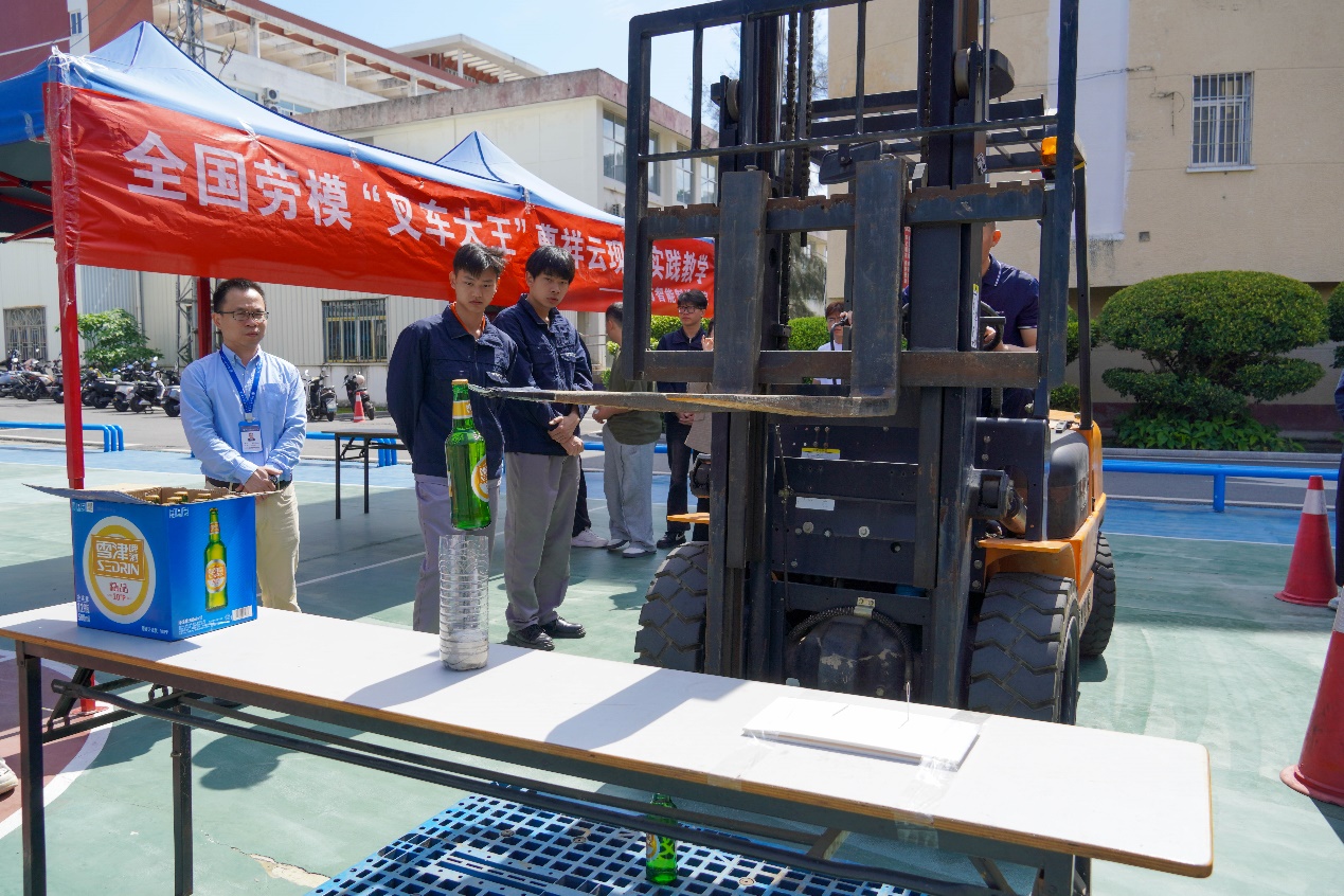 (图6:曹祥云技能大师进行叉车开瓶盖技能展示)