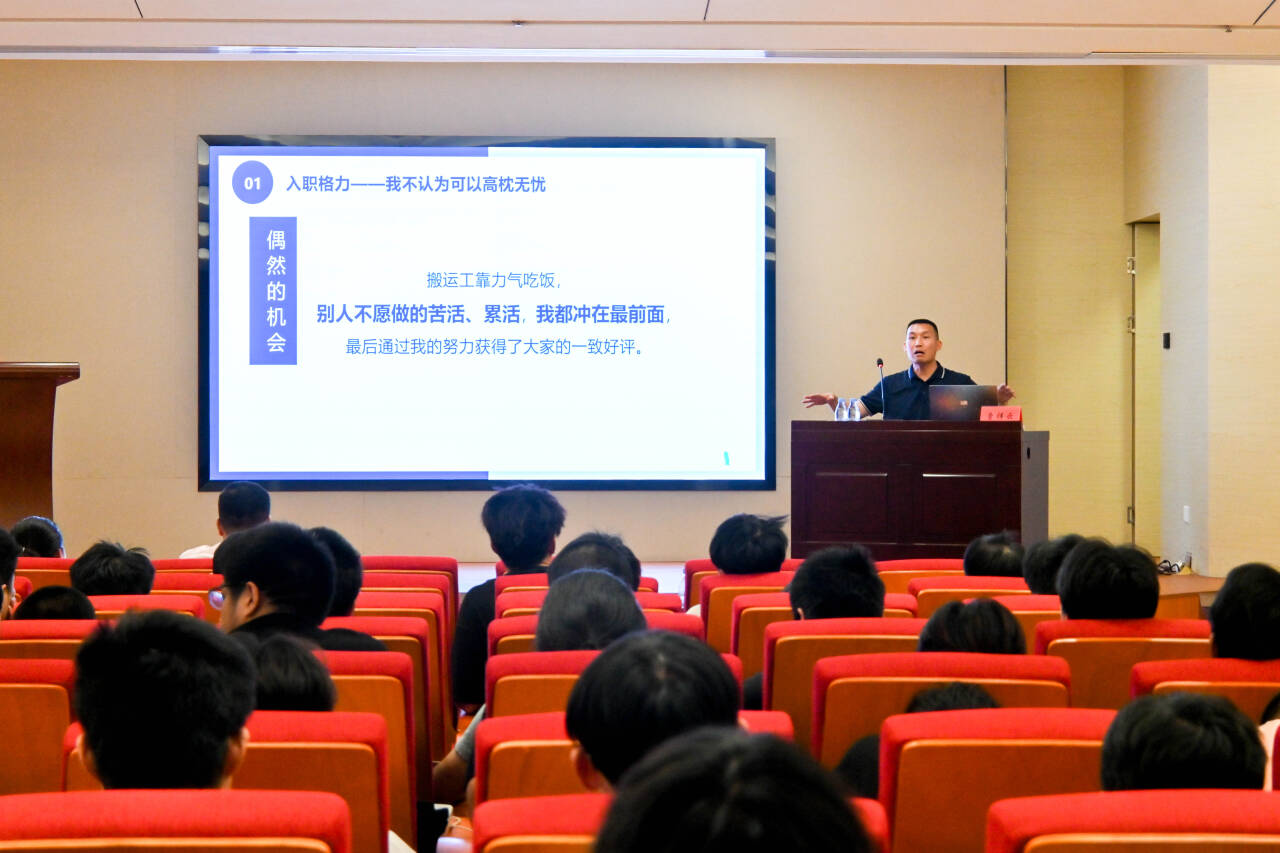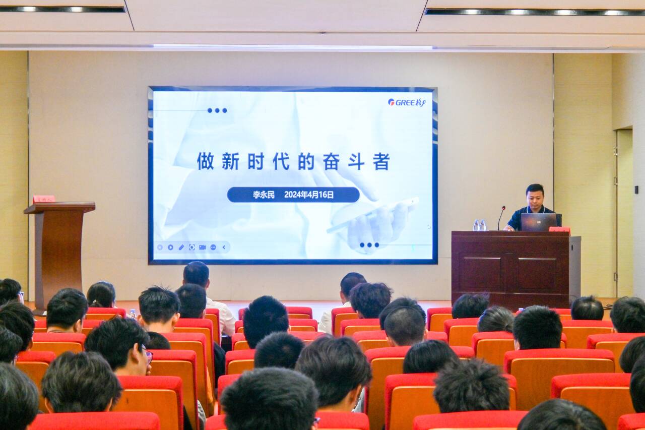 结束了精彩绝伦的叉车技能展示后,曹祥云技能大师为我院师生作了题为“‘叉车大王’的坚持与热爱”的主题讲座,深刻阐释了“何为时代楷模”、“何为工匠精神”,他围绕入职格力前后的个人经历,培训学习、团队管理等方面的心路历程展开分享并鼓励同学们要将技能报国的梦想和信念根植于心中,将工匠精神融入日常的学习实践中,精益求精、专心致志,在平凡岗位上做出不平凡的业绩,争当新时代的奋斗者。