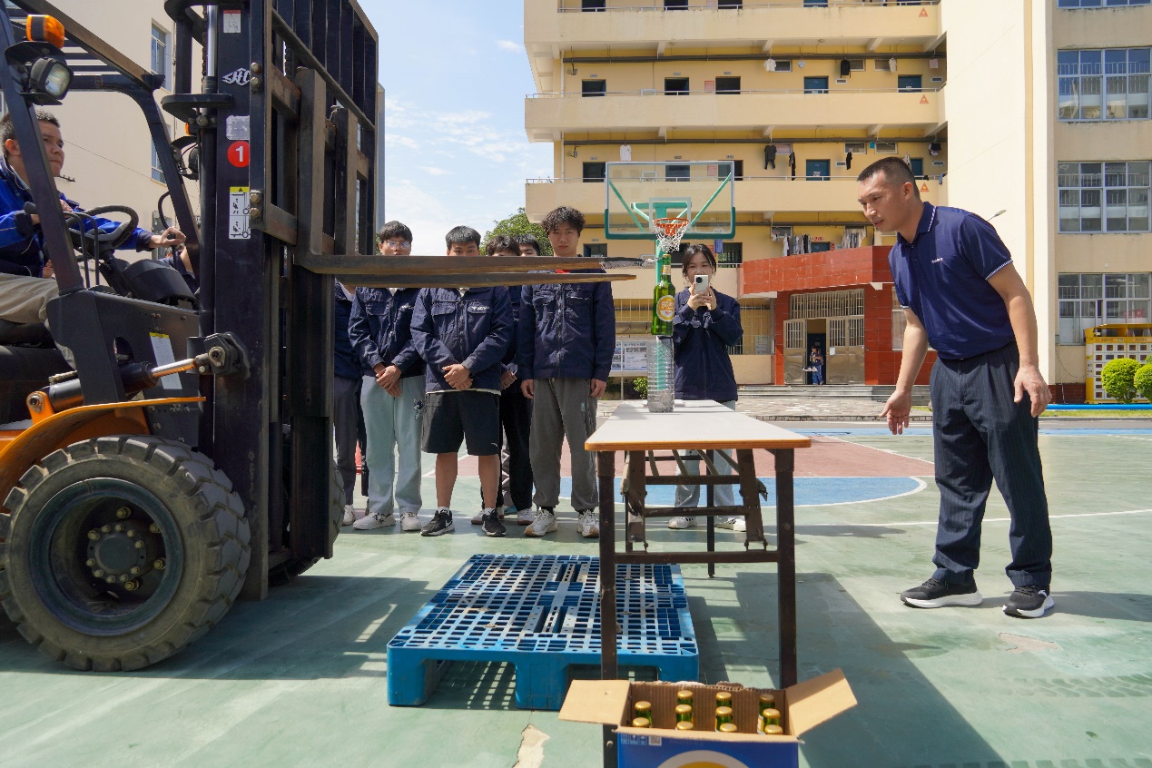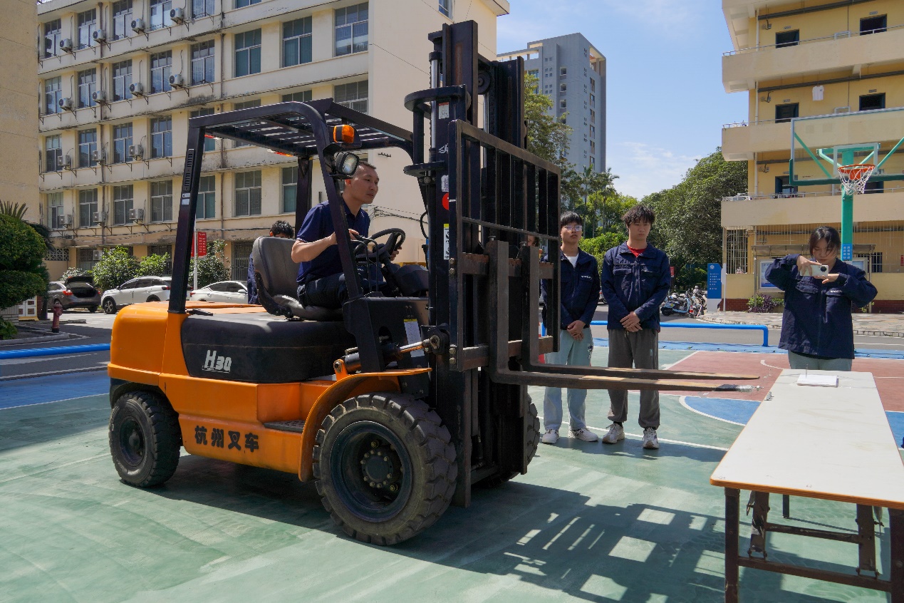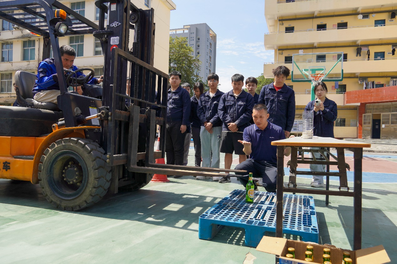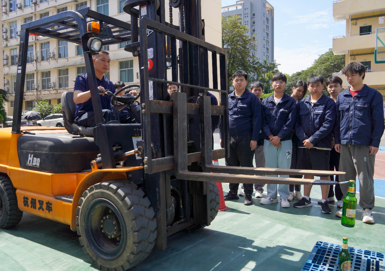 吉尼斯叉车技术纪录成功挑战者、全国叉车技能冠军曹祥云技能大师在福道园工程机械与港口设备实训室为同学们进行了一场精彩绝伦的叉车技能现场教学。“叉车运酒瓶、叉车开瓶盖、叉车叠螺母、叉车穿针孔”等CCTV-1《挑战不可能》节目中的极限绝活将曹祥云大师精湛的叉车技术展现得淋漓尽致。在教学过程中,曹祥云大师还亲自指导师生进行叉车叉运木箱,倒车绕桩等实操项目,并就叉车驾驶“快、准、稳”等综合技术水平的练就进行了生动的讲解。他勉励同学们要坚定走技能成才、技能报国之路,珍惜学习时光,努力学习、积极实践、苦练内功,掌握扎实专业理论与过硬专业技术本领,全面提升自身综合素质,用时不我待的人生态度书写匠心筑梦的青春篇章。