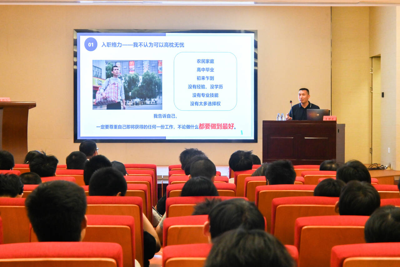 (图2:李永民技能大师作“做新时代的奋斗者”为题的专题讲座)