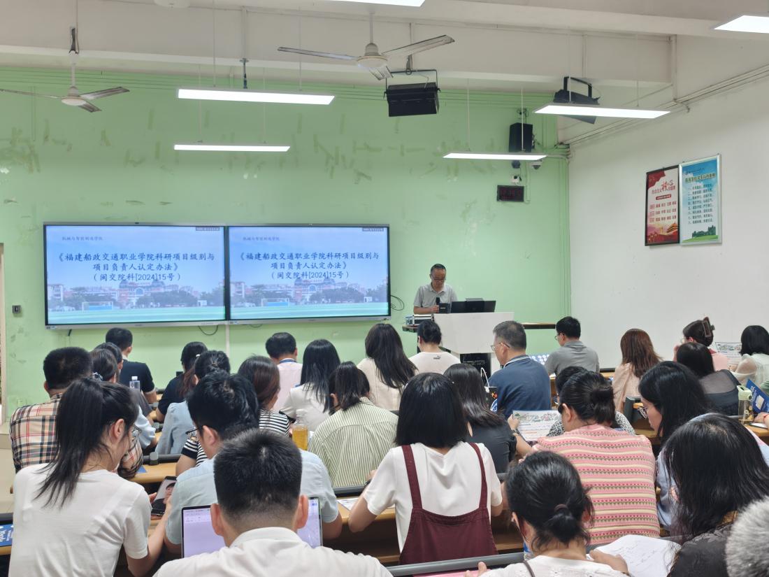 会议重点学习了《福建船政交通职业学院科研项目经费使用“包干制”管理办法(试行)》(闽交院科[2024]2号)、《福建船政交通职业学院科研计划项目经费管理办法》(闽交院科[2024]4号)、《福建船政交通职业学院学术期刊分类目录及学术论文认定办法》(闽交院科[2024]7号)、《福建船政交通职业学院科研项目级别与项目负责人认定办法》(闽交院科[2024]15号)、《福建船政交通职业学院大型仪器设备购置可行性论证管理办法(试行)福建船政交通职业学院大型仪器设备开放共享管理办法(试行)》(闽交院科[2024]9号)等文件。
