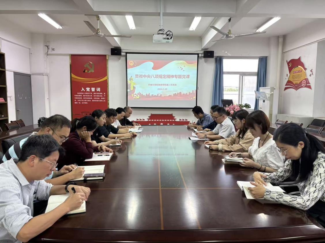2025年5月29日,机械与智能制造学院第二党支部开展贯彻落实中央八项规定精神专题宣讲活动,引导支部教师党员筑牢作风建设思想防线,会议由支部书记杨开怀主持,全体教师党员参加。