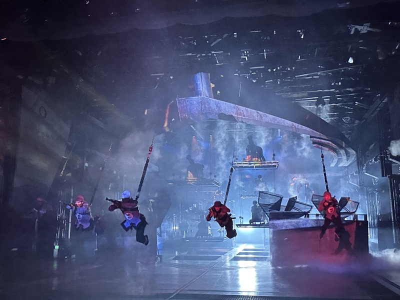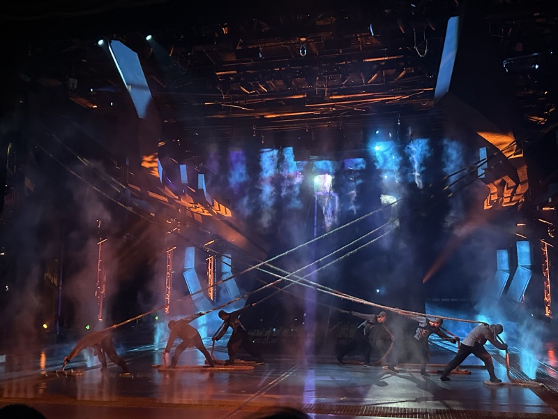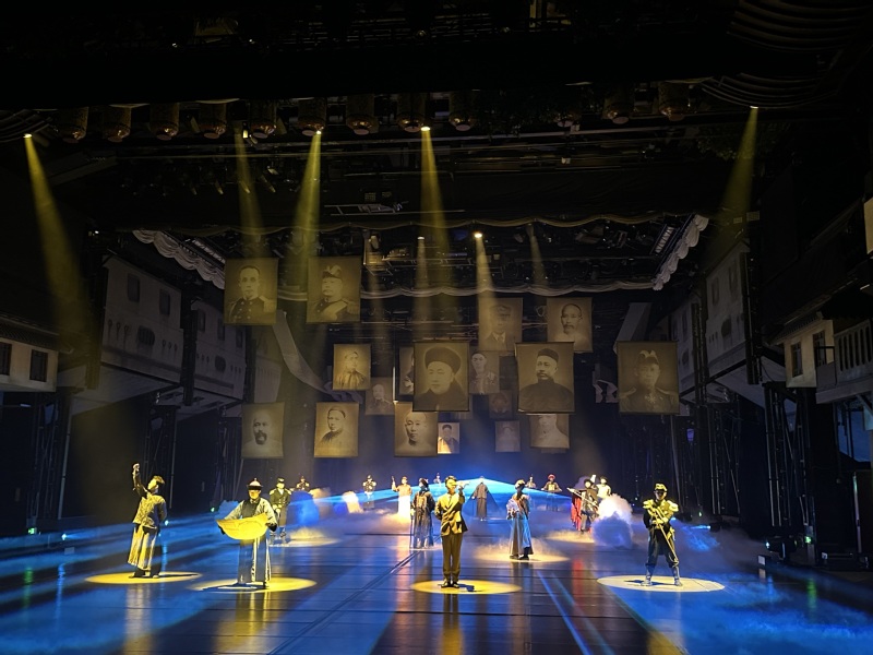 《最忆船政》以百年船政发展史为叙事核心,依托老厂房独特空间优势,打造出科技感十足的折叠剧场。在约70分钟的演出中,可移动的观众席化身为“时光之船”,载着党员教师们沉浸式穿梭于各个历史场景:船政学堂里的朗朗书声、万年青号军舰下水的震撼瞬间、甲午海战的悲壮征程……声光电技术与演员的真情演绎相互交织,让尘封的历史变得鲜活可感,生动再现了船政先辈们实业救国、向海图强的壮志豪情。