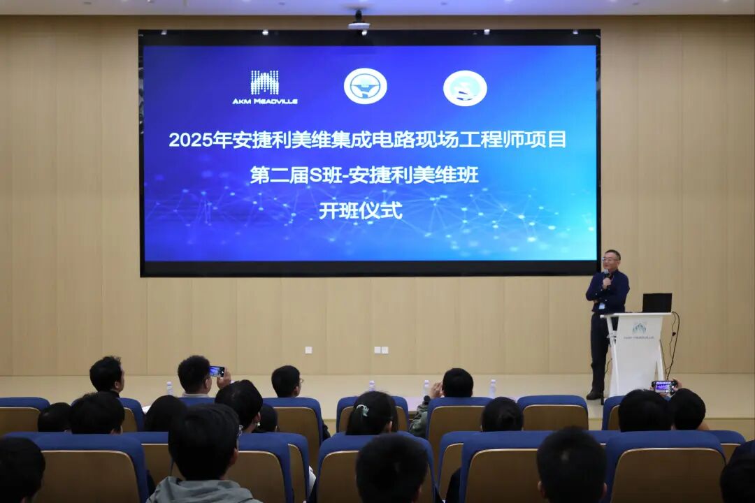 仪式上,安捷利美维厦门基地总经理汤加苗在致辞中回顾了校企合作历程,并对新学员表示热烈欢迎。他指出,集成电路作为朝阳产业,正迎来5G、汽车电子、可穿戴设备等新兴需求的爆发期,行业前景广阔,人才需求旺盛。他鼓励同学们珍惜宝贵机会,提前感知职场环境,从而在起跑线上占据优势。