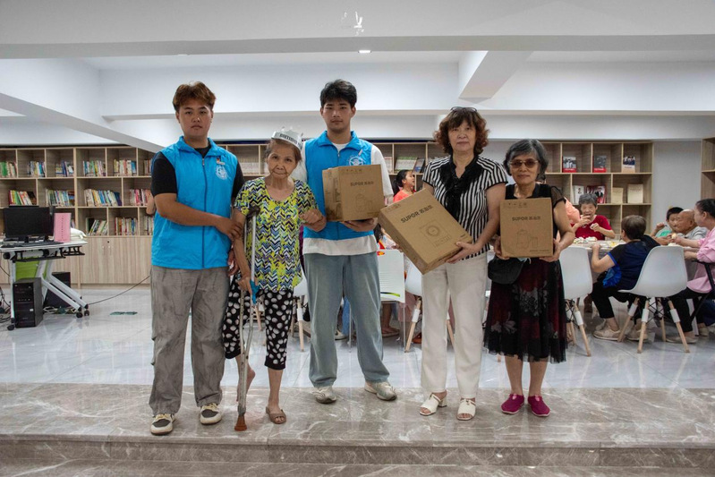 随后的抽奖环节将氛围推向高潮。电磁炉、热水壶等实用小家电整齐排列,志愿者捧着抽奖箱走到老人身边。随着号码逐一揭晓,现场掌声与欢呼声此起彼伏,中奖老人接过奖品时的笑容,成为秋日里最动人的风景。“这些礼物太实用了,孩子们想得真周到!”一位老人抚摸着崭新的热水壶说道。