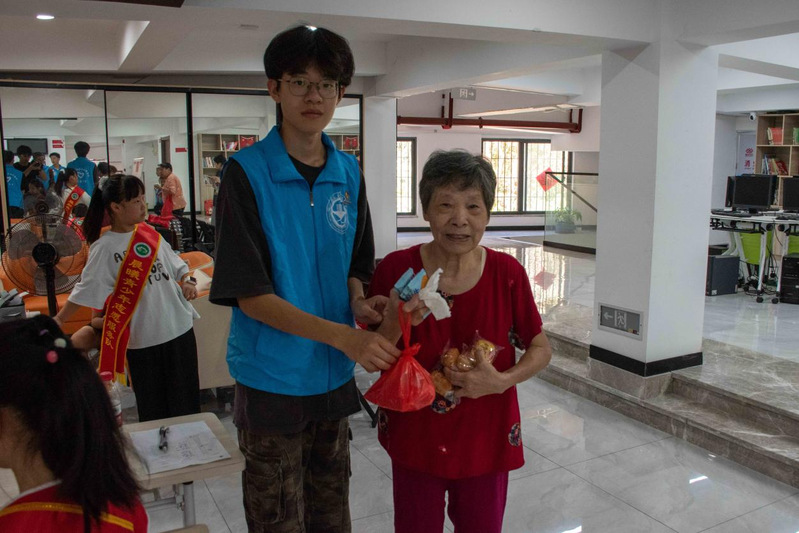 活动接近尾声,志愿者们将爱心礼物一一送到老人手中。礼物虽不贵重,却饱含心意。学生们俯身与老人交谈,倾听他们的故事,拥抱告别。