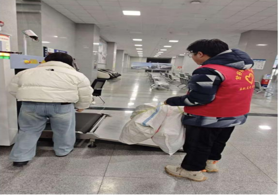 他们穿梭在客运大厅的人潮中,主动为旅客提供引导购票、搬运行李、解答出行疑问等暖心服务,贴心帮扶老弱病残等重点旅客,用一句句耐心解答、一次次暖心伸手,为归乡旅途增添温情。从书桌走向服务岗,学子们以双手传递温暖,以脚步丈量责任,不仅为客运中心营造了安全、有序、温馨的出行环境,更在基层服务中锤炼了意志、提升了能力,深刻体会到青年服务家乡的使命与意义。