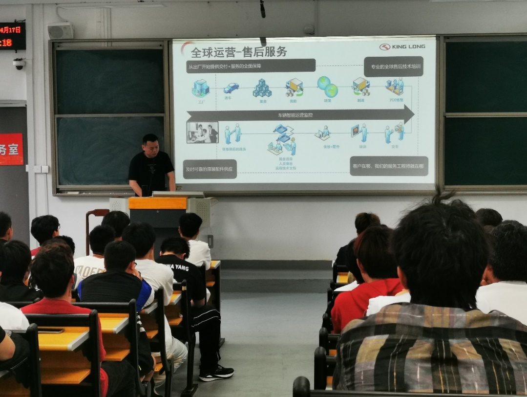 金龙人事部陈力昕经理介绍了金龙的企业发展情况;海外售后服务部林奇山经理重点介绍了金龙海外售后概况、海外服务工程师的岗位职责和能力要求、职业晋升通道。