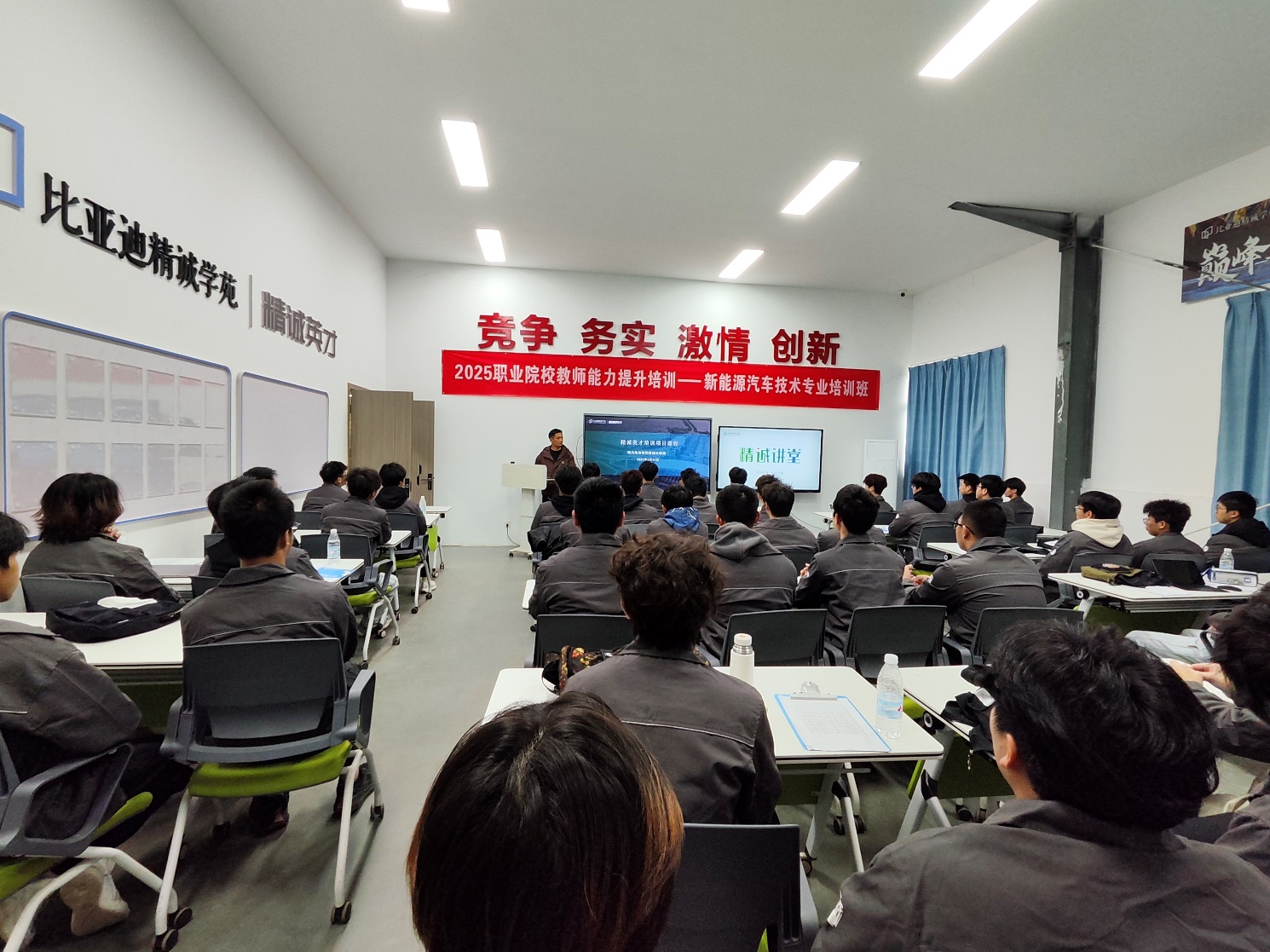 2025年3月26日下午14:00,比亚迪精诚学苑"企业工匠进校园"系列讲座在中区比亚迪汽车实训基地教室举行。本次以"动力电池结构原理及检测"为主题的讲座,不仅是一次专业知识的传授,更是一场工匠精神的传承盛会,23级新能源汽车技术2班(比亚迪精诚英才班)全体学生参加了此次活动。主讲人赖昌斌工程师作为比亚迪技术巡检专家,15年来始终坚守在汽车行业一线,以其精益求精的工匠态度,成为福建省比亚迪全品牌技术支持的骨干力量。讲座中,他以"工匠育人"为理念,通过生动详实的案例,深入剖析了动力电池的核心技术,特别强调了在检测环节中"毫厘不差"的专业标准。