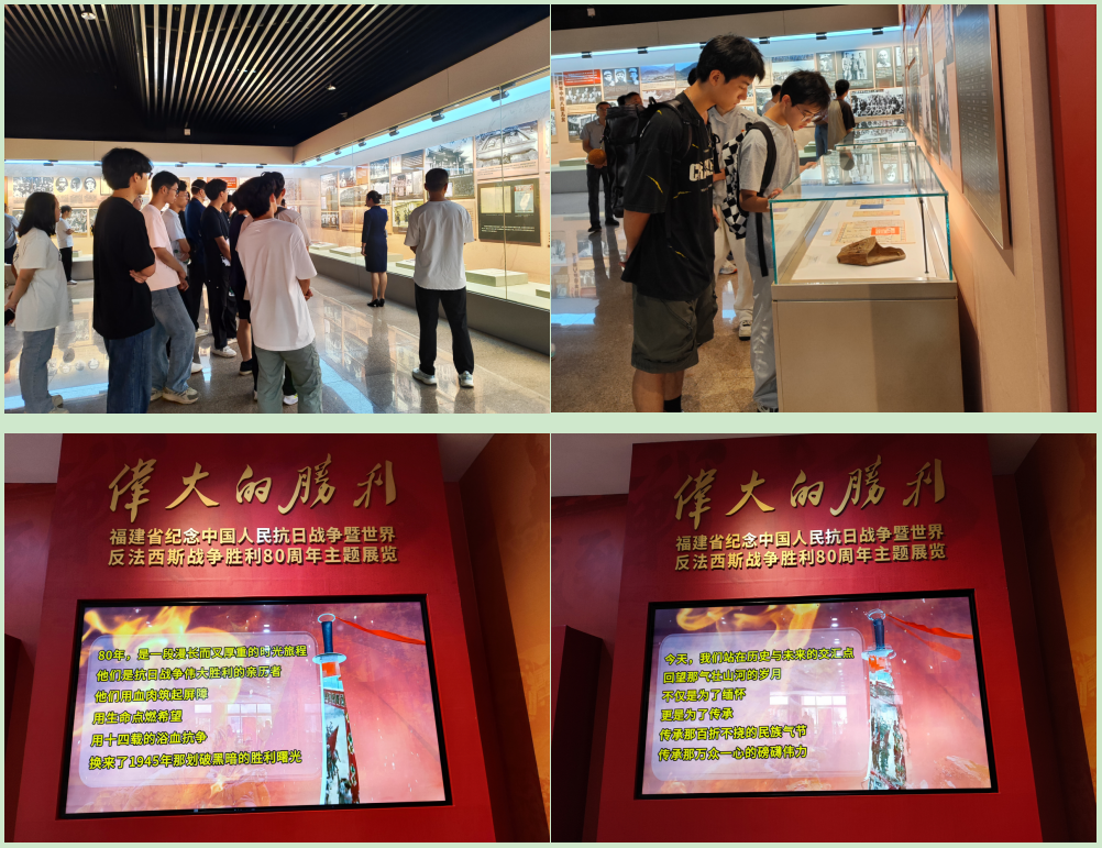 2025年9月28日9时,汽车学院党总支组织师生党员、积极分子及学生代表共50人,前往福建省革命历史纪念馆,参观由省委宣传部主办的“伟大的胜利——福建省纪念中国人民抗日战争暨世界反法西斯战争胜利80周年主题展”,通过沉浸式学习重温抗战历史,厚植家国情怀。