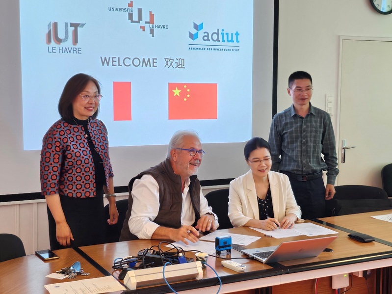 代表团与诺曼底勒阿弗尔大学校长佩德罗·拉格什·多斯桑托斯Pedro Lages dos Santos及国际发展部负责人蒂埃里·塔贝利翁Thierry TABELLION等举行会谈,就双方师生互访、教科研合作,特别在港口与海洋产业人才培养合作方面达成共识,并签署校际合作备忘录。